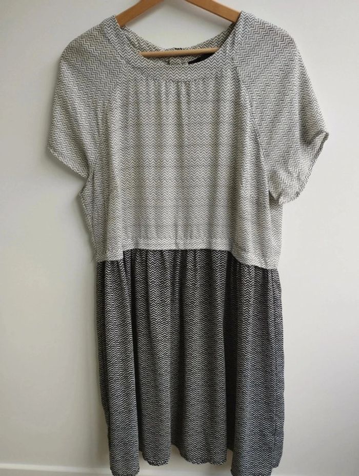 Robe légère à motifs chevrons ✓ taille 44 ✓ H et M ✓ Parfait état ✓ fermeture éclair dans le dos #dinooblofemme