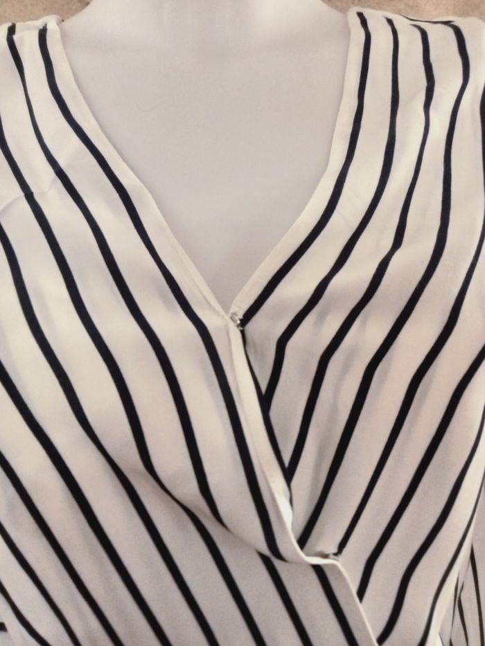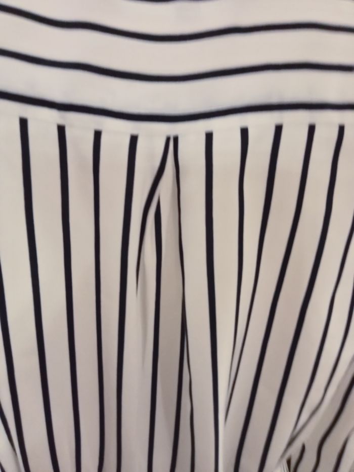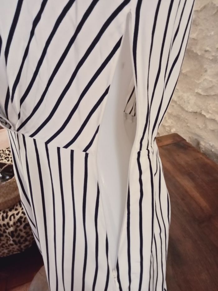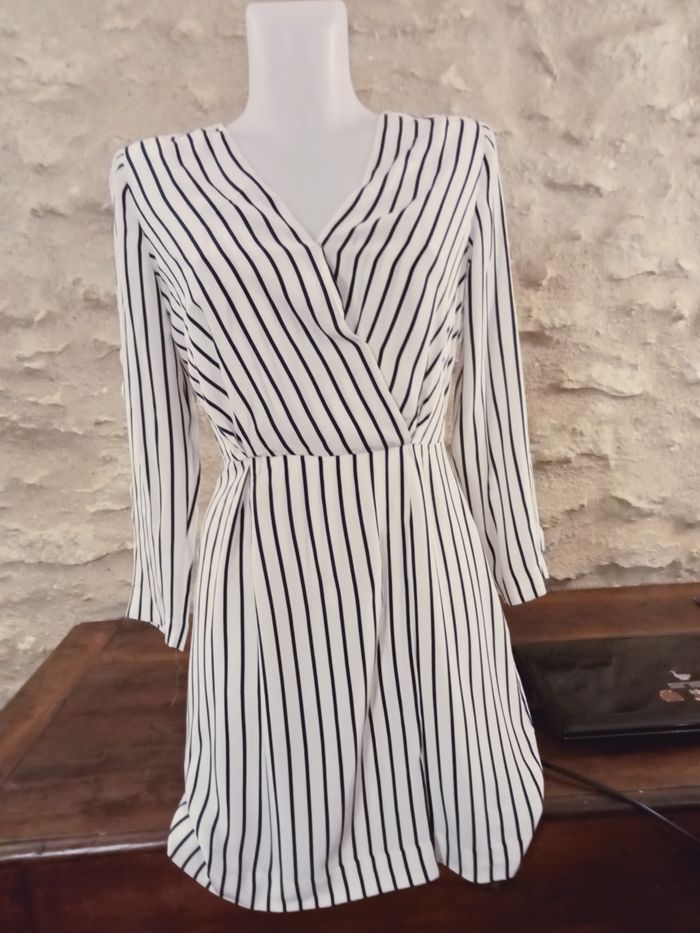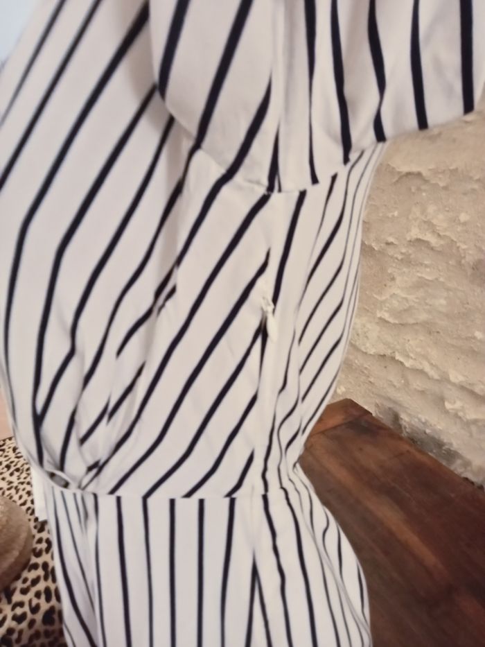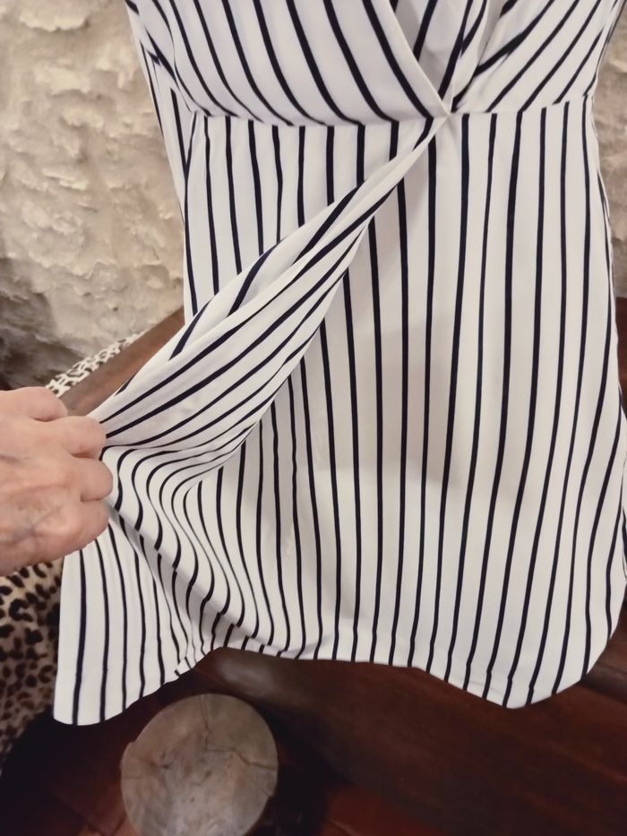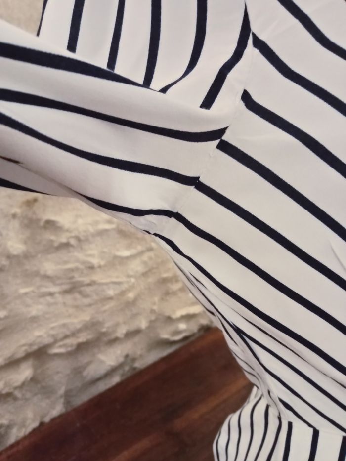 robe Tommy Hilfiger blanche rayée bleu en viscose manche longue aisselles à aisselles 44 cm, épaules 36 cm Hauteur 92 cm. doublée sur l'arrière de la robe. taille 38 taille US 4.