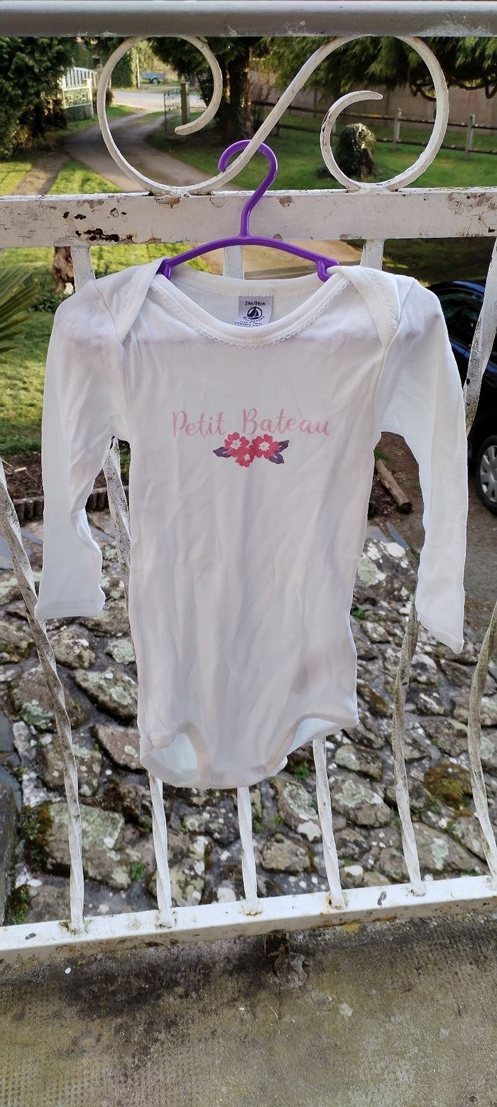 Lot de 3 bodies à manches longues pour fille. Marque Petit Bateau. Taille 24 mois. Comme neuf. Que mondial relais ou Relais Colis.