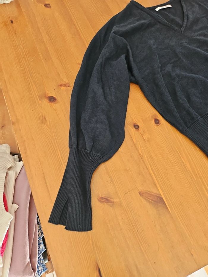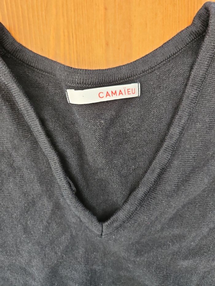 Pull léger marine marque camaïeu t M tbe Manche 3/4 type ballon. Étiquette découpée mais je sais que c'est M