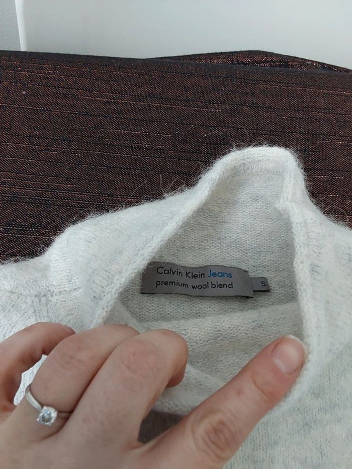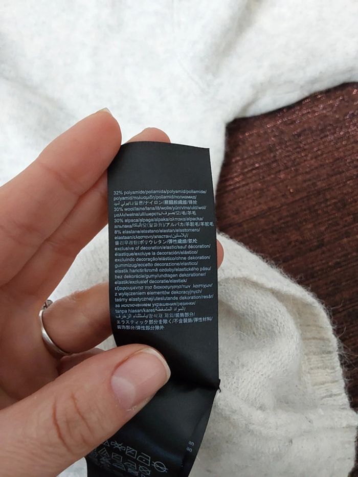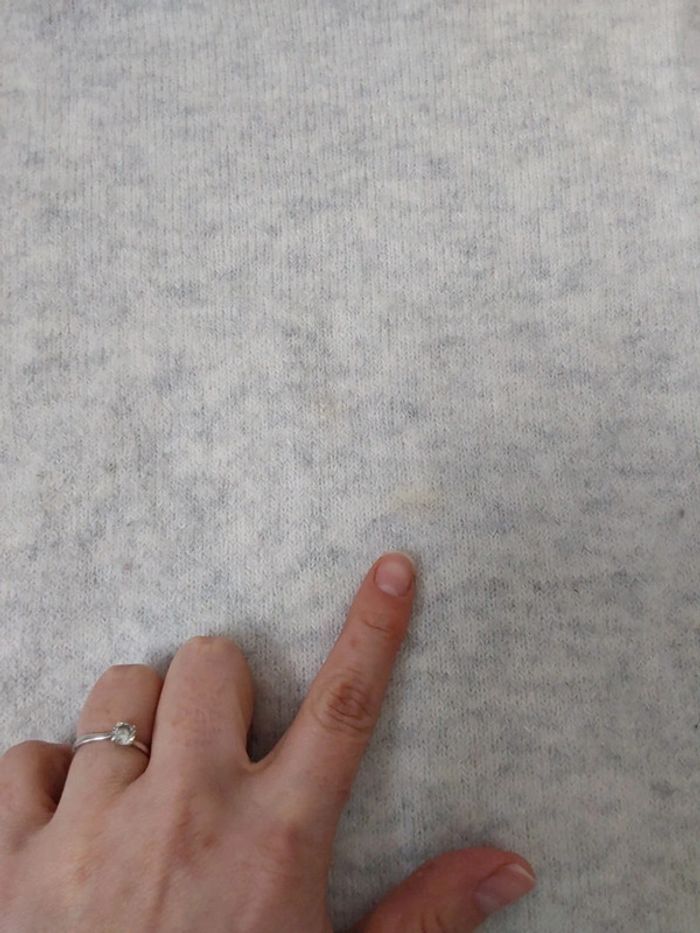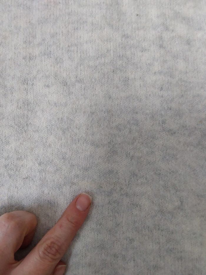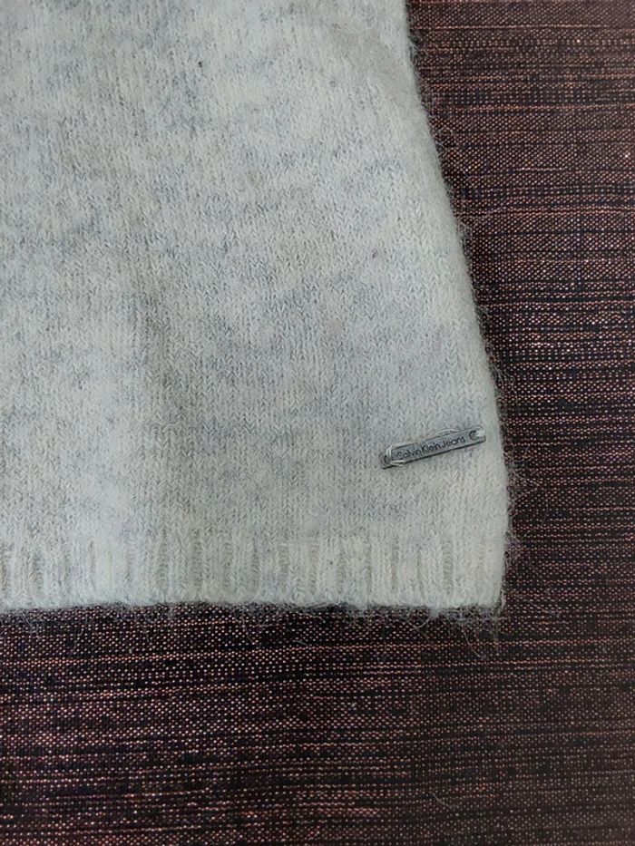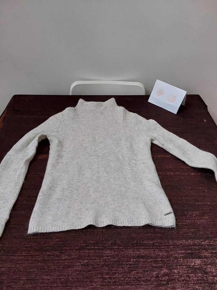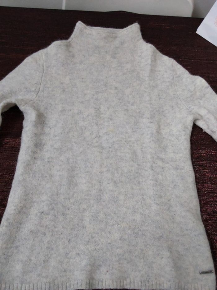 Pull tout doux grâce à sa composition en laine et alpaga Quelques petites tâches peu visibles Couleur gris clair