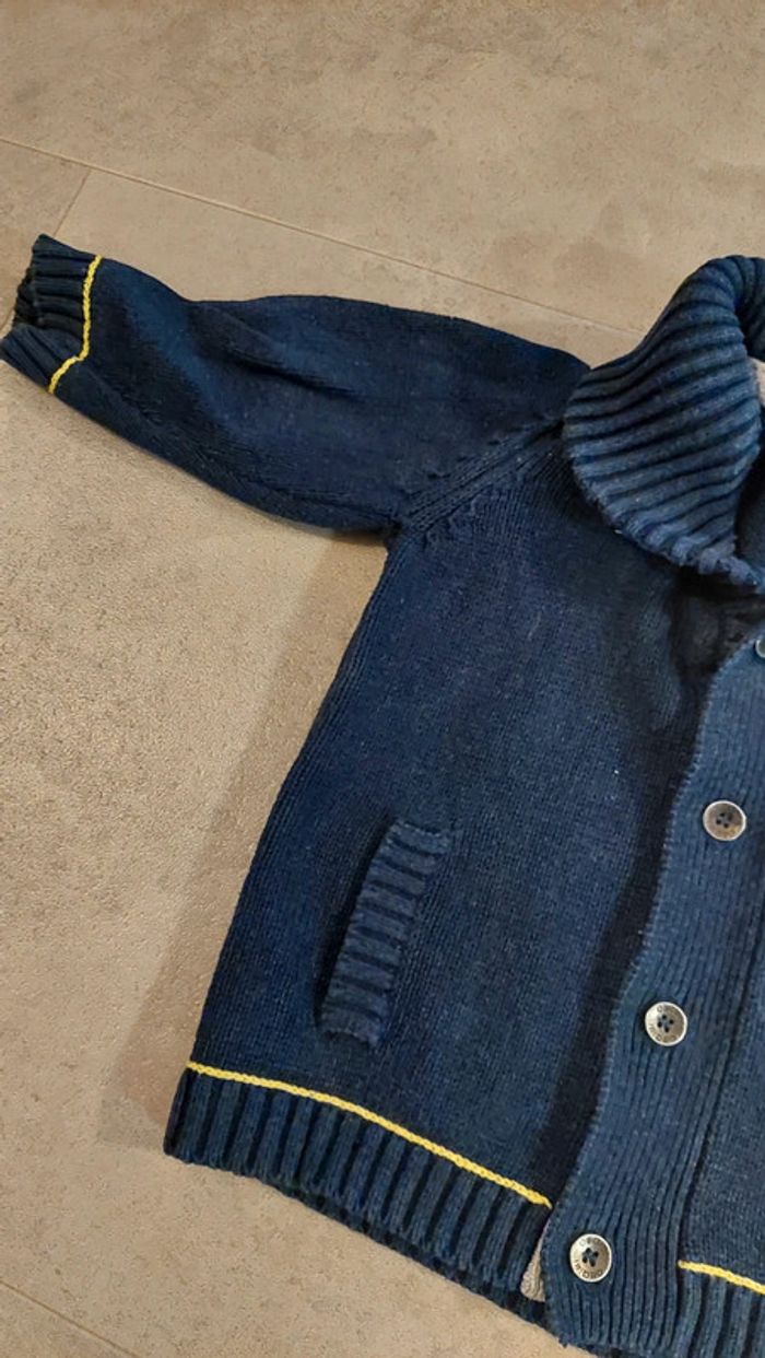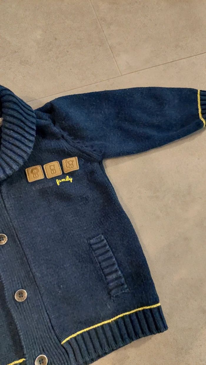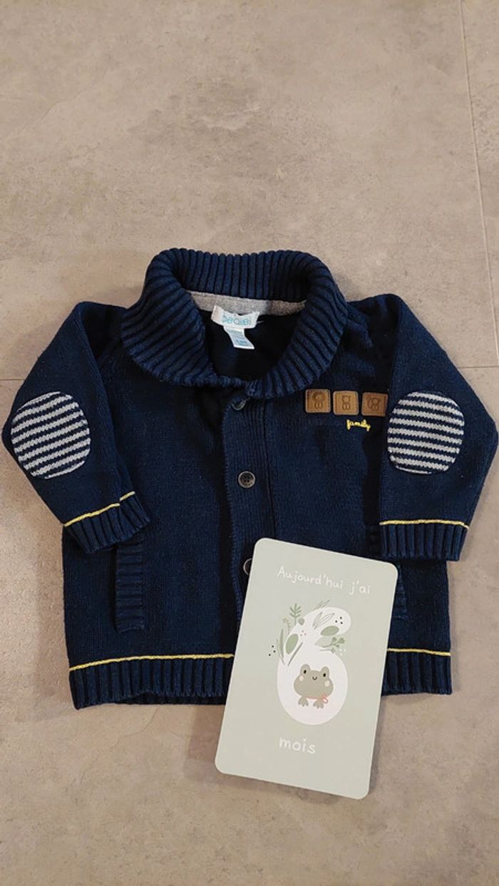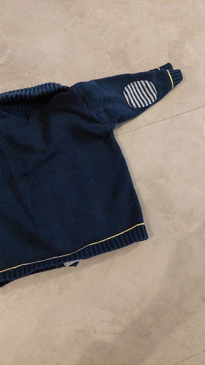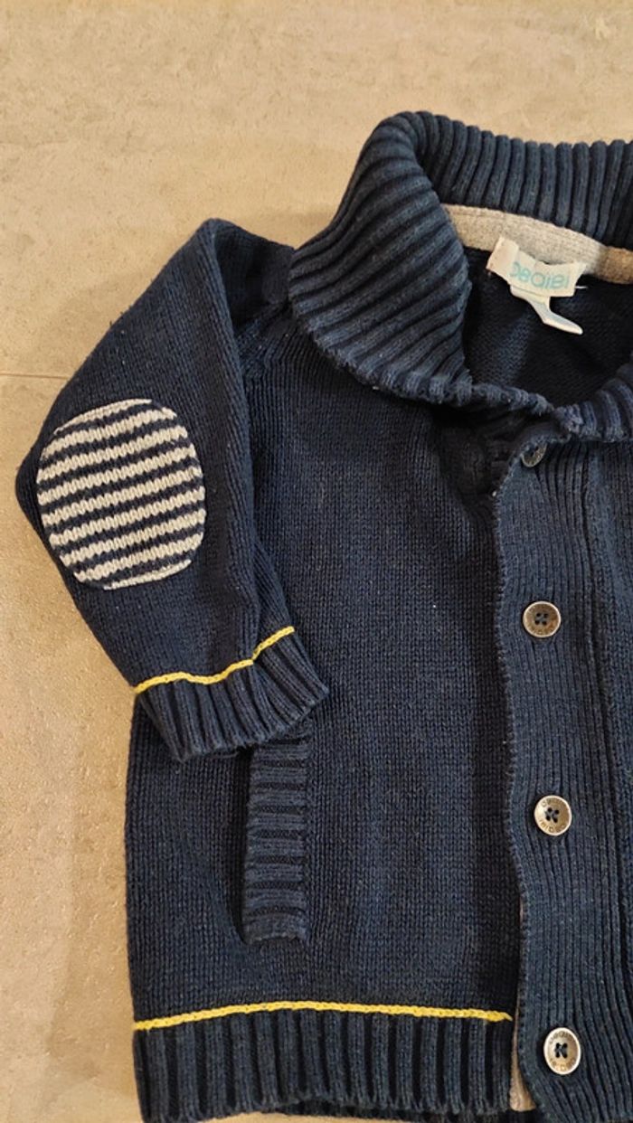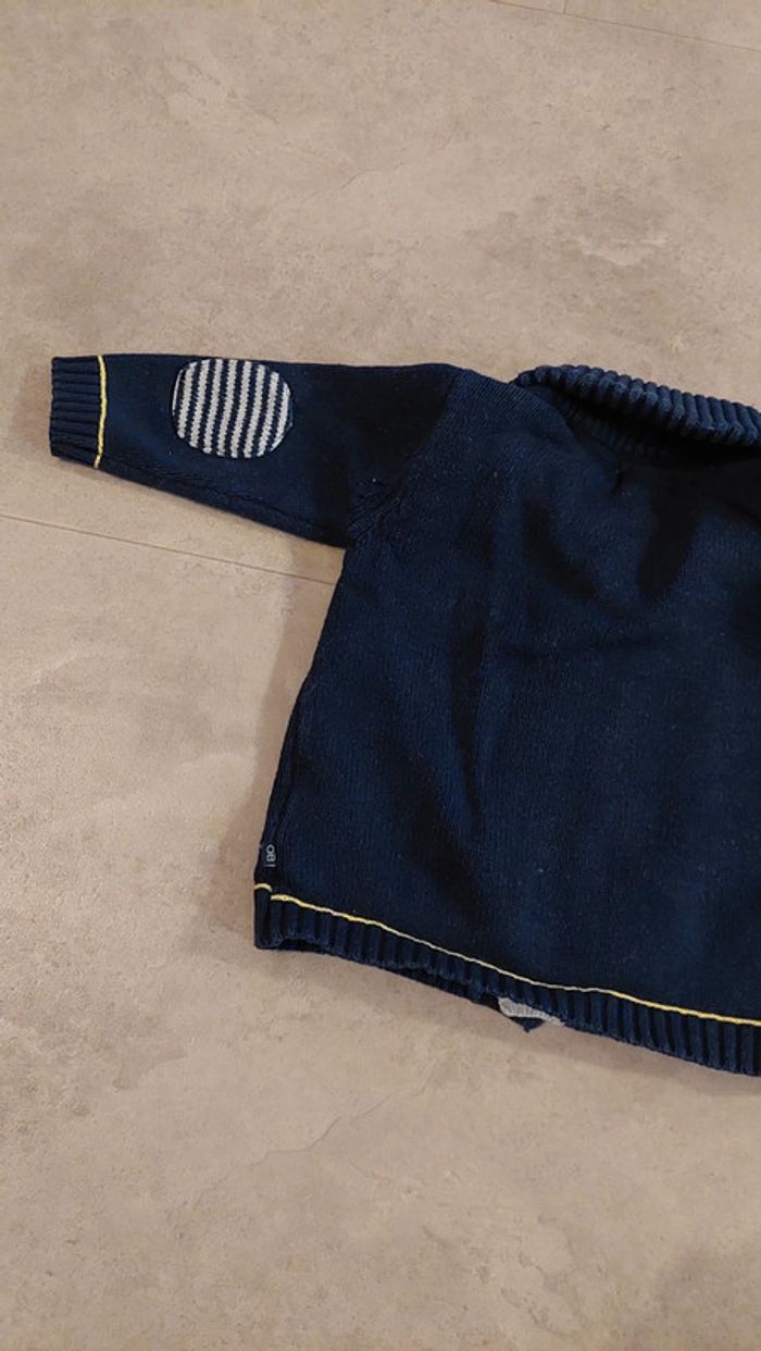 Gilet bleu marine obaibi taille 6 mois. Très bon état. Chaud. Parfait hiver et printemps. Réduction sur les lots