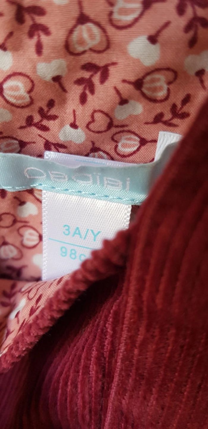 Robe en velours côtelet de chez Obaibi. Taille 3 ans. Couleur bordeaux. Très bon état !