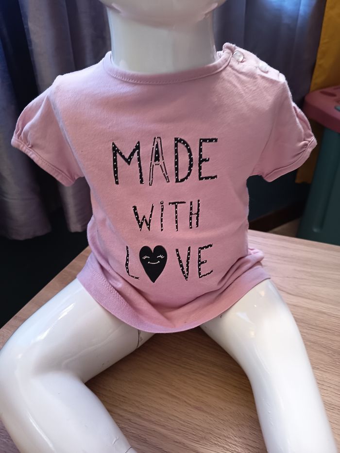 Tee shirt manches courtes made with love rose