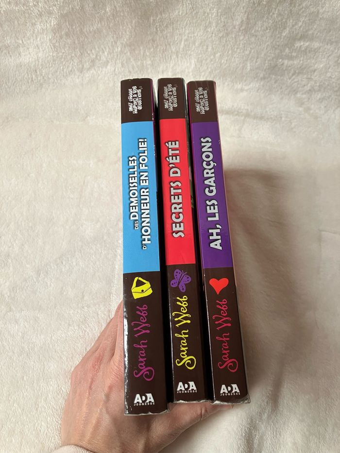 Série Amy Green répond à vos questions: 3 livres de Sarah Webb: Ah les garçons (tome 1) + Secrets d’été (tome 2) + Des demoiselles d’honneur en folie ! (tome 3) ~ Achetés neufs mais ma fille n’en a hélas pas pris soin donc état satisfaisant à 1€ pièce soit 3€ le lot (voir photos pour les imperfections) ~ Envoi soigné.