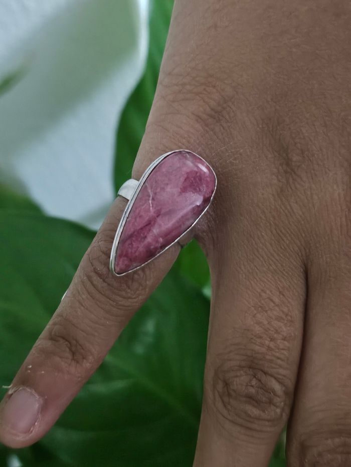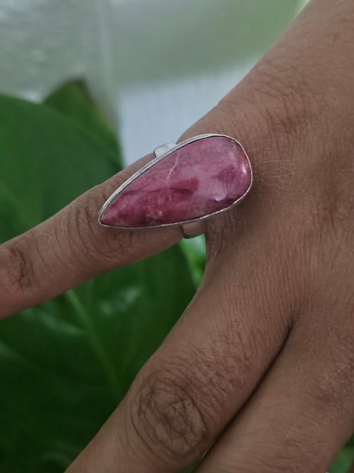 Bague en argent sterling 925 avec pierre rose thulite - photo numéro 1