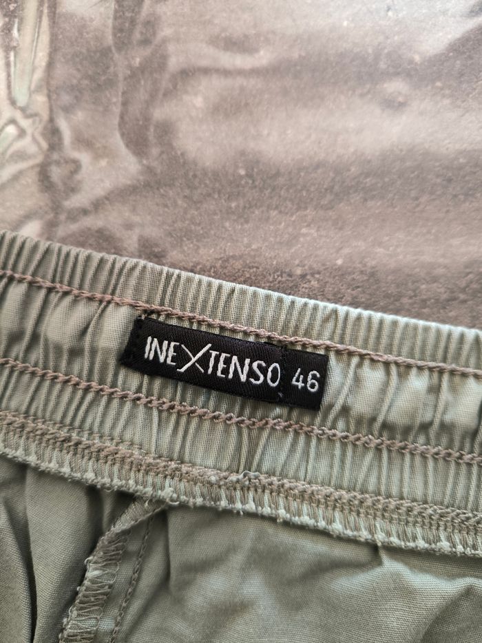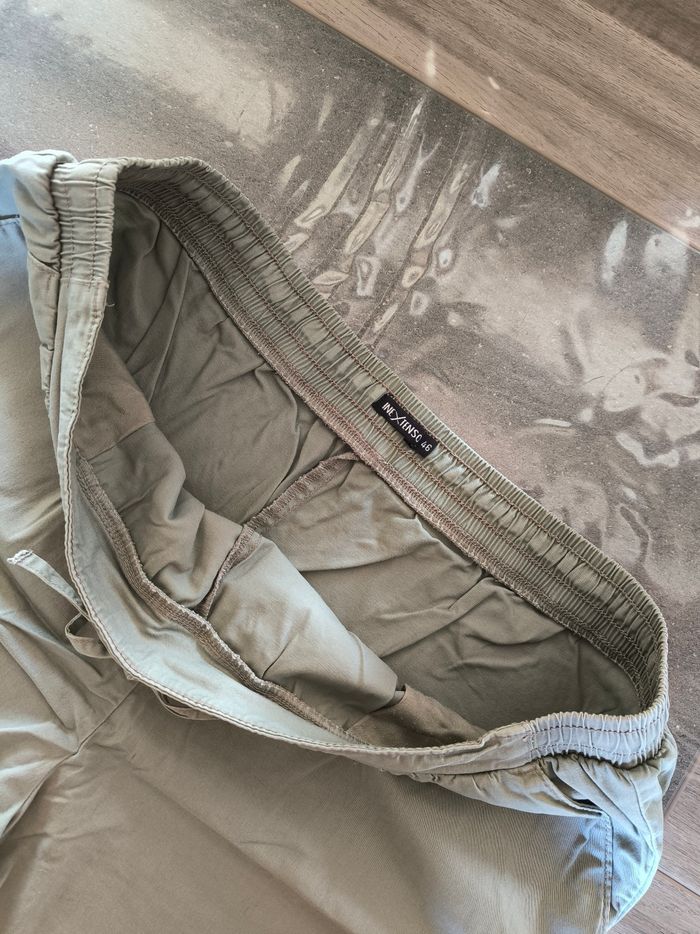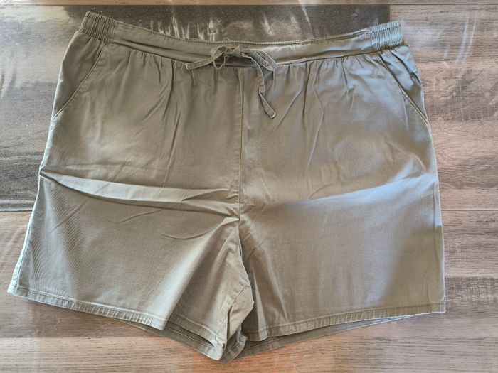 Short Marque In Extenso Taille 46 • Coloris vert kaki • Taille élastique avec cordons • 2 poches • Tissu fin Largeur taille non étirée : 46 cm Largeur taille étirée au maximum : 58 cm Longueur totale : 42 cm Longueur entrejambe : 12 cm Largeur bas des jambes : 32 cm En très bon état #evelyne_taille_46