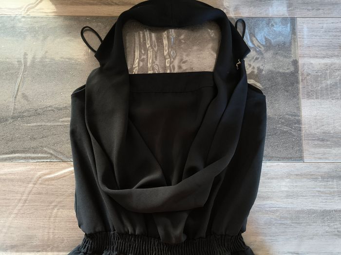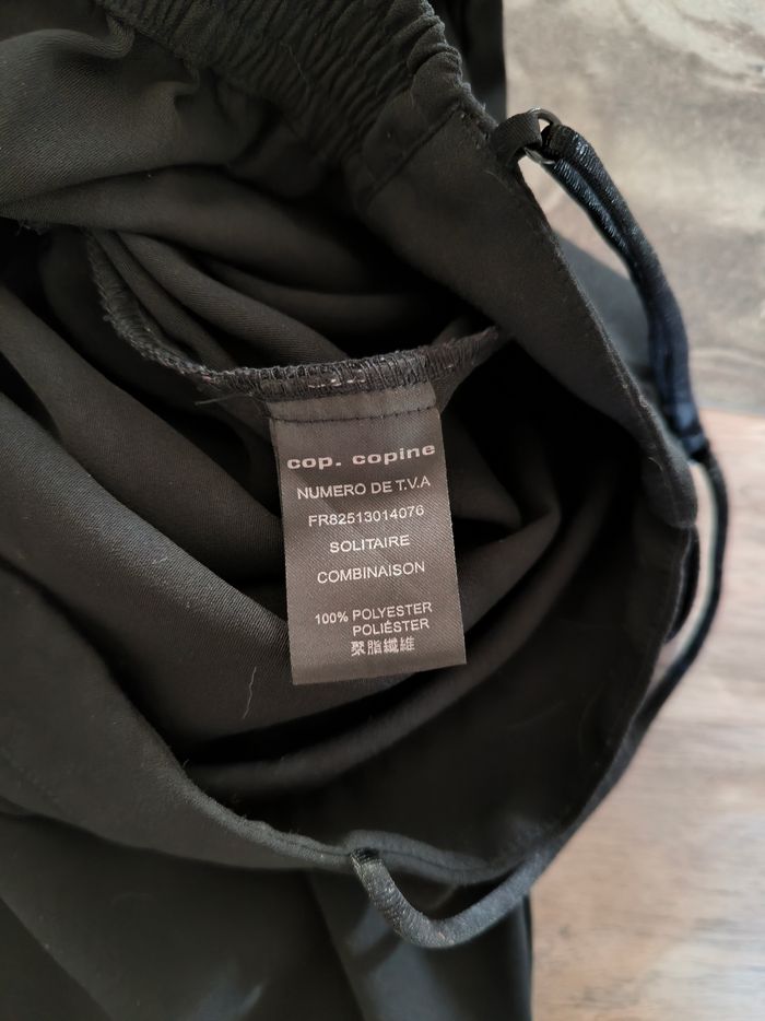 Combinaison pantalon à bretelles Modèle solitaire Marque Cop. Copine Taille 38 • Coloris noir • Haut avec bretelles et col bénitier • Bretelles réglables et stretch • Haut du dos élastique • Taille élastique avec fronces • 2 poches Largeur aisselle à aisselle non étirée : 36 cm Largeur aisselle à aisselle étirée au maximum : 50 cm Longueur totale : 143 cm Longueur aisselle : 126 cm Longueur entrejambe : 71 cm Largeur bas des jambes : 15 cm Effet chic, habillé Peu portée, en très bon état #evelyne_taille_38