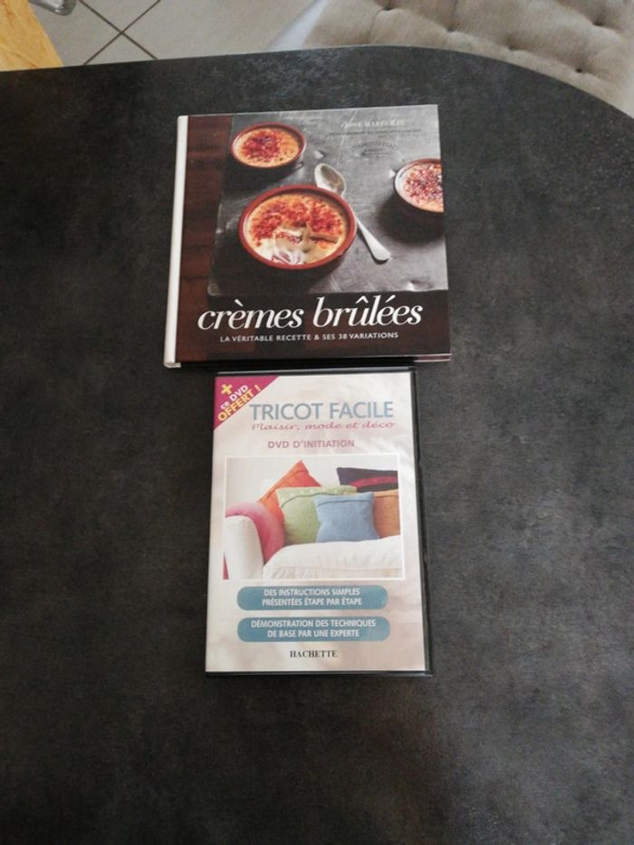 Livre de recettes sur les crèmes brûlées Et un dvd pour initiation tricot #renhaclivres