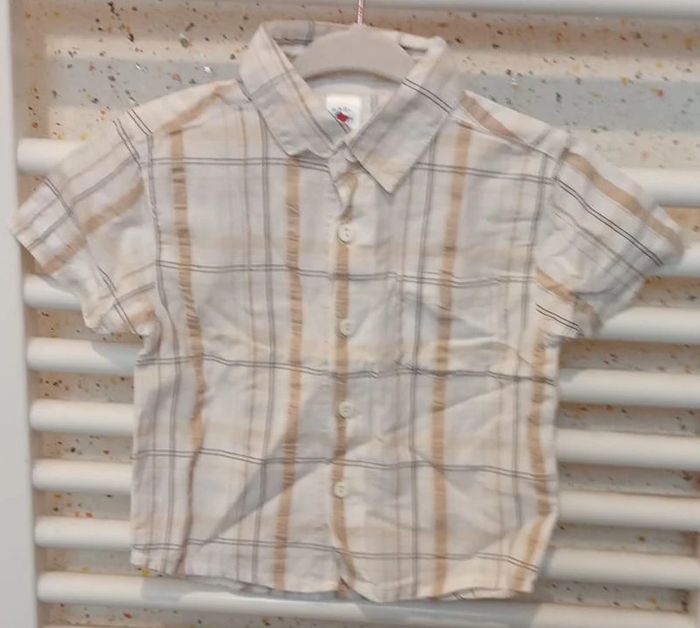 Chemise manche courte blanche rayé noir beige Baby Club Taille 9 mois
