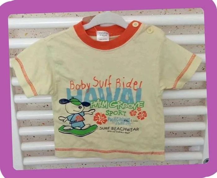Tee shirt manche courte jaune orange motif surf Taille 6 mois #sycaro35 #sycaro356mois #taille6mois #teeshirt #manchecourte #jaune #orange #surf A0831