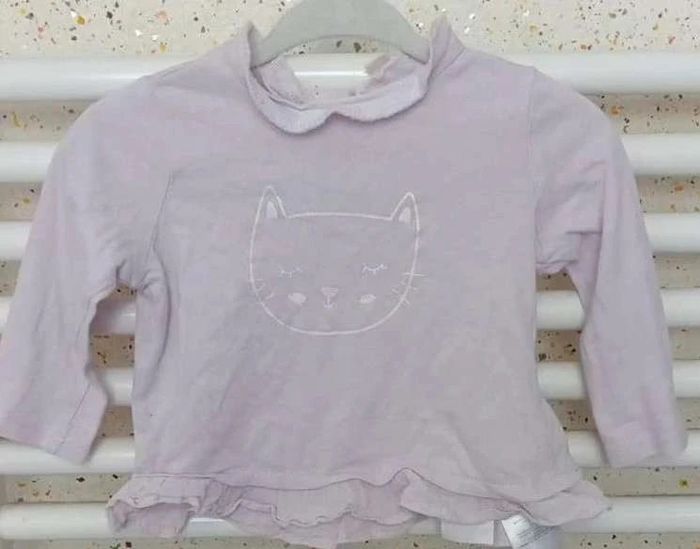 Tee shirt manche longue rose motif chat DPAM Taille 6 mois #sycaro35 #sycaro356mois #taille6mois #teeshirt #manchelongue #rose #chat #dpam A3082