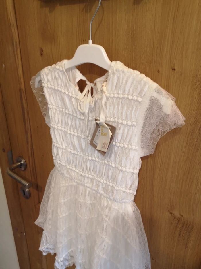 Magnifique robe doublée à courtes manches en blanc CKS avec voile sur le long de la robe. Acheté pour un mariage finalement reporté suite au Covid 19. Idéal pour une cérémonie ou pour les fêtes. Neuf. Taille 4 ans. #alexam_fille4ans #cksfille4ans #robefille4ans