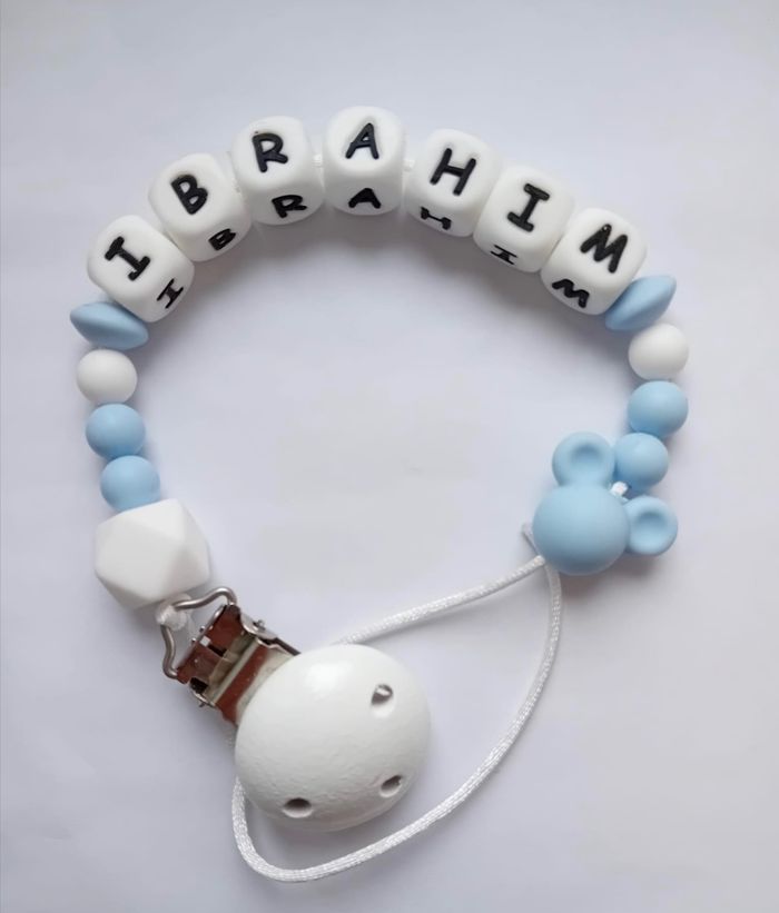 Attache tétine personnalisé en silicone ou en bois au souhait de l’acheteur . Personnalisable au choix de l’acheteur que ce soit la couleur comme le prénom ou le thème . Le fil est doublé pour plus de sécurité tout le long de l’attache tétine. N’hésitez pas à me demander et regarder mon dressing. Une photo vous sera envoyée avant l’expédition pour vous ayez un aperçu du rendu. Tous les produits sont réalisés avec du materiel spécial conçu aux bébés , enfants.