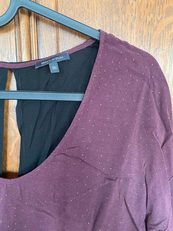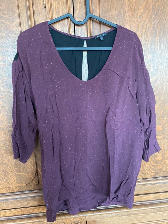 Blouse bordeaux pois dorés Porté 1 fois Manches 3/4