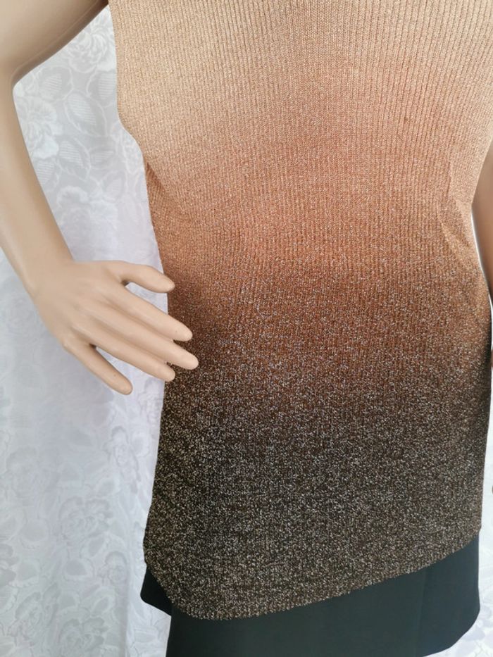 Bonjour 😊 Tunique dorée et marron. Sans manches. Joli dégradé du doré au camel vers le marron chocolat Le tout pailleté grâce au fil métallisé. Dimensions mesurées *Épaule à épaule 40 cm *Aisselle à aisselle 46 cm *De haut en bas 70 cm Composition : 92 % viscose et 8 % fil métallisé. 💕Réduction activée sur lot 👗Les articles de mon dressing sont classés par # et par taille dans la section à propos de mon profil afin de faciliter vos recherches. ➡️Frais de livraison plus avantageux avec Mondial relay. #natacha3110_tunique #natacha3110_tuniquetaille40 #natacha3110_tunicsize40 #natacha3110_tuniekmaat40 #natacha3110_Tunikagröße38 #natacha3110_talladetúnica40 #natacha3110_tagliatunic44 #femme #mujer #women #frauen #Mná #Vrouwen #Moglie