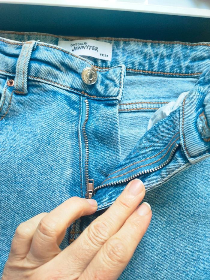 Coloris bleu clair Bouton et fermeture éclair Coupe slim mom #didinedorataille34 #didinedoraadofille #jennyfer #mom