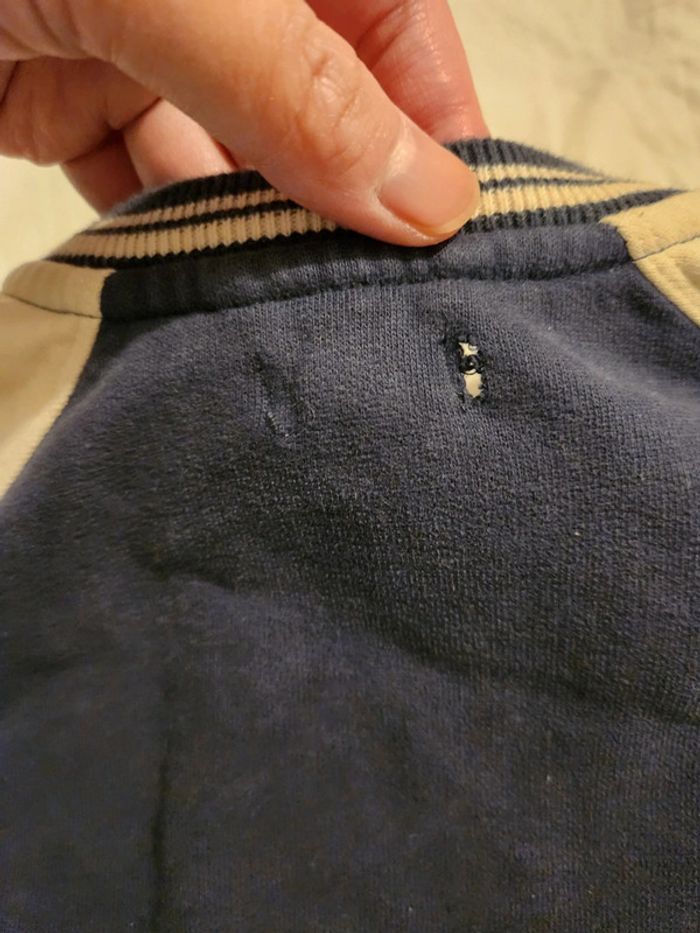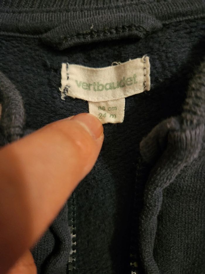 Veste 86cm 24 mois de chez vertbaudet. Un petit trou derrière voir dernière photo. Acheté neuf porté sur un enfant.