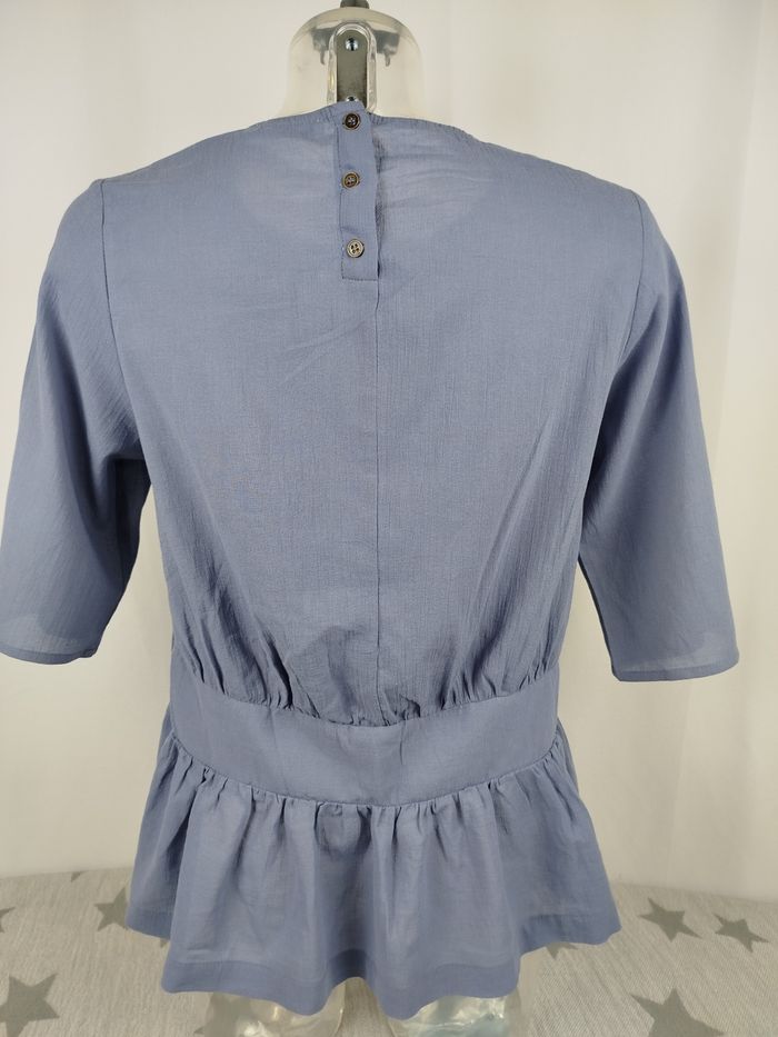 Envoi rapide ✈️ et soigné 🫧 Pour les lots contactez moi 🛍️ Tout est négociable 💰 Je réponds rapidement 📨 Pensez à visiter mon dressing Top blouse femme manches courtes de la marque mod ref Coloris bleu gris 100% coton Taille 2/M/38-40 Jamais porté sans étiquette