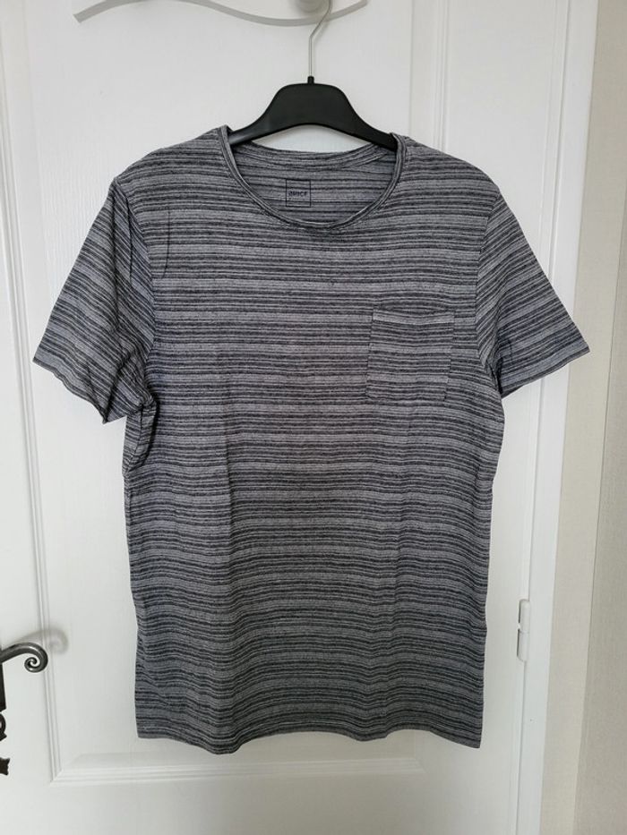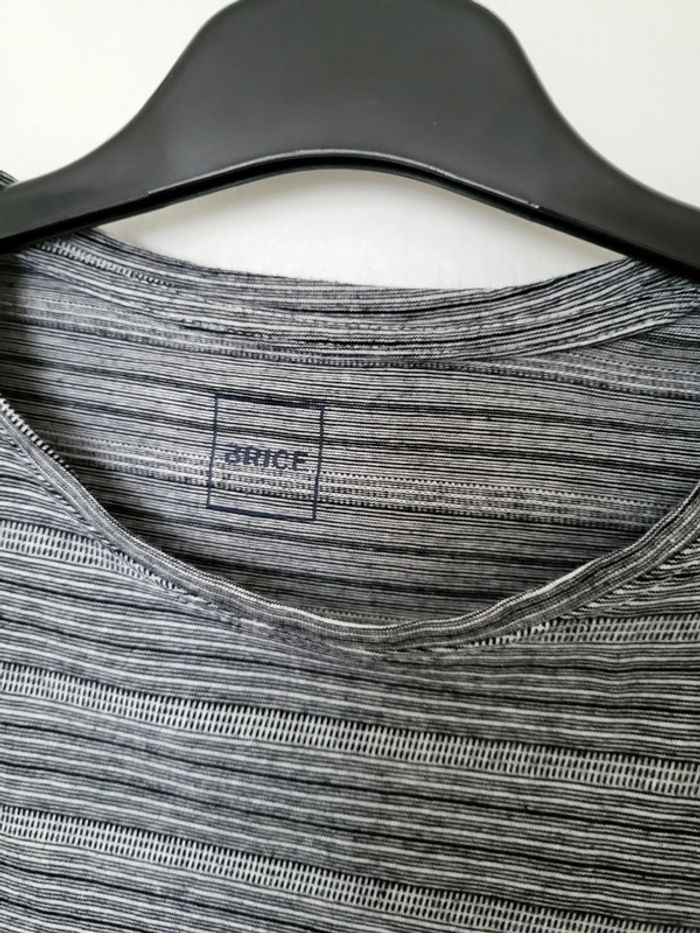 T-shirt gris noir à rayures Brice Etiquette coupée mais il s'agit d'une taille L (voir mesures dernière photo) #SILVVêtementsHtL