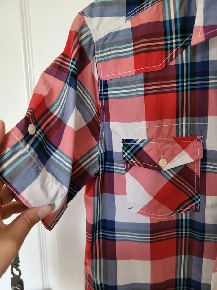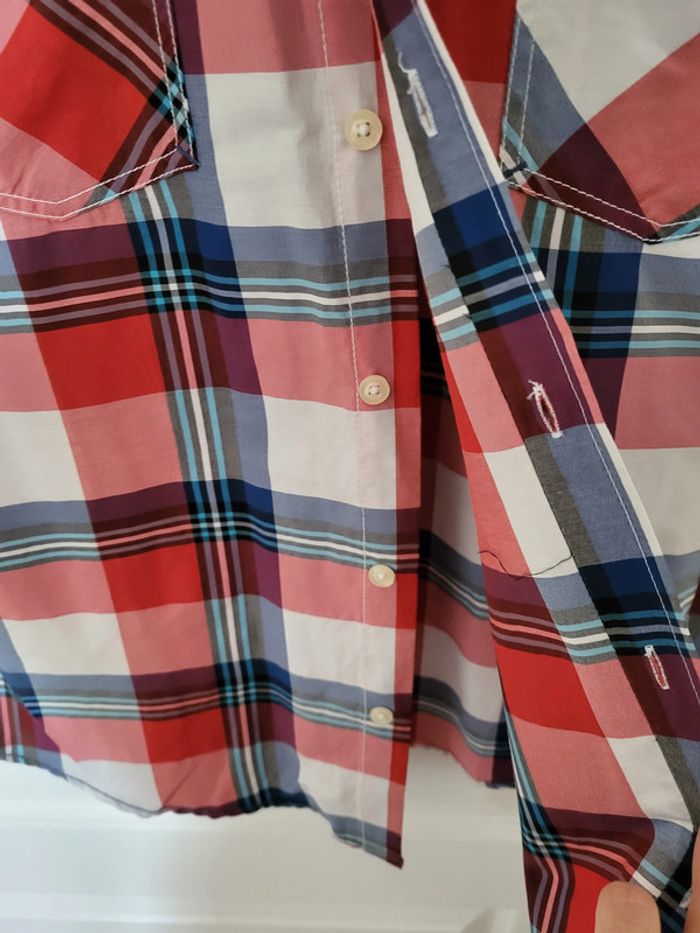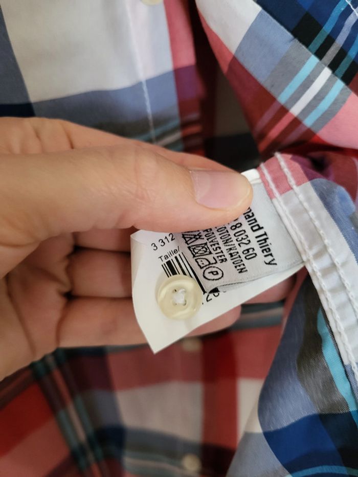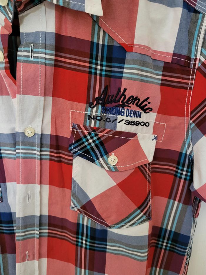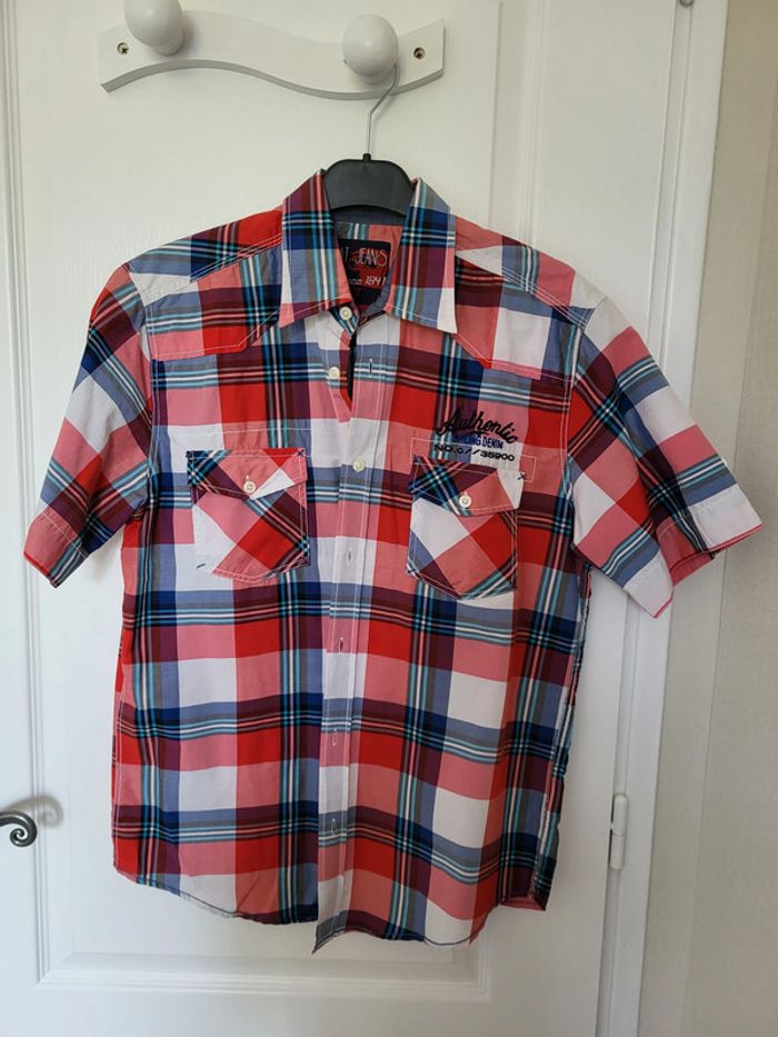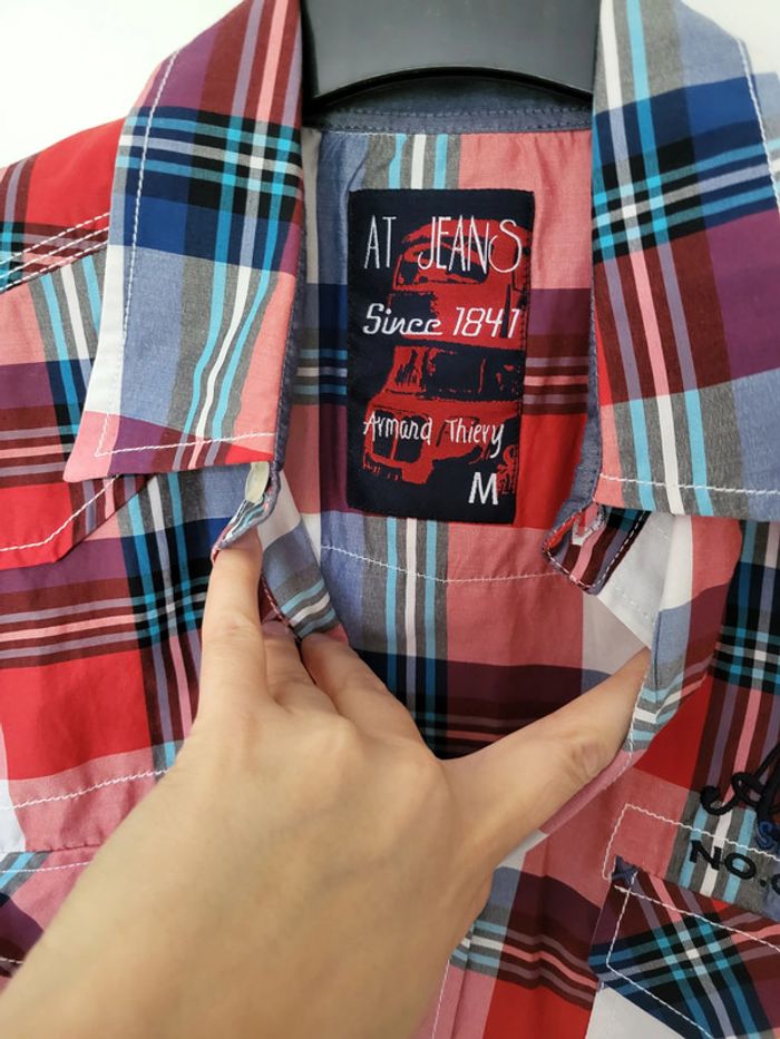 Chemise manches courtes Bleu, blanc, rouge à rayures/carreaux Armand Thiery AT Jeans Authentic strong denim Taille M #SILVVêtementsHtM