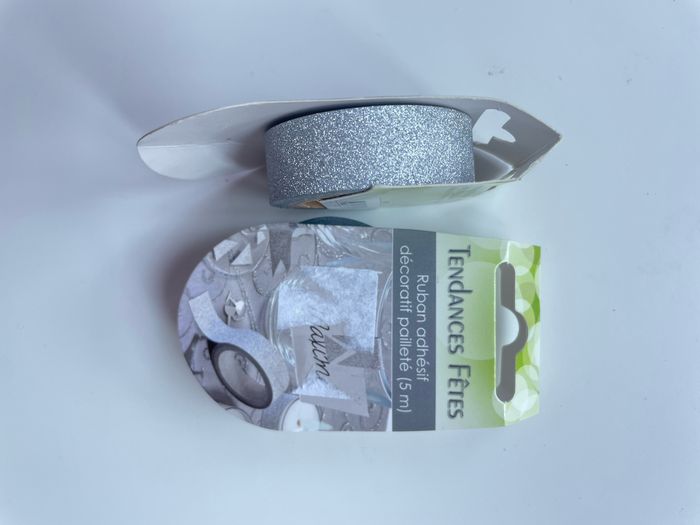 Décorations de fête neuves 2 paquets de scotch décoratif argentés brillant long de 5 mètres chacun et large de 1,5 cm Idéal pour décorer vos événements Lot possible avec d’autres articles alors n’hésitez pas #fête #mariage #décoration #bapteme #anniversaire