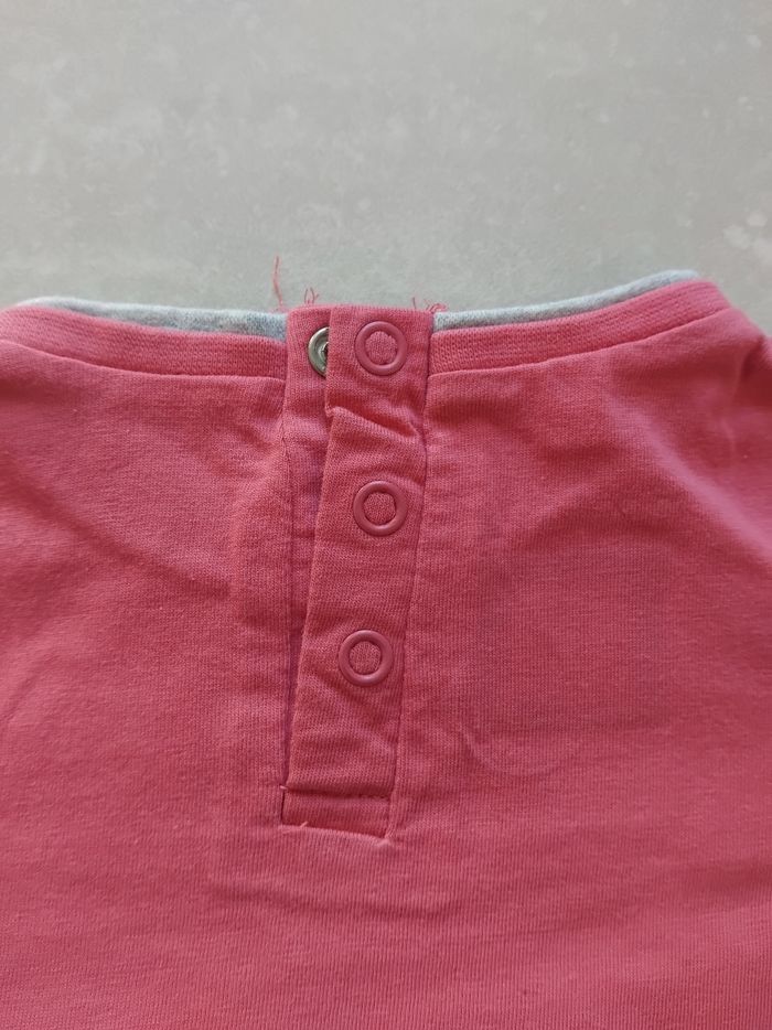 T shirt manche longue couleur rose ouverture pression au dos. Marque tissaia. #fille9moisnade3033 100 % coton
