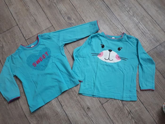 Lot de 2 tee shirts manche longue mais coton fin, très bon état. Taille 86 cm soit 18/23 mois. Je n'ai plus les bas de pyjama ils étaient détendus car utilisés pour dormir (on enlevait le haut 😊)