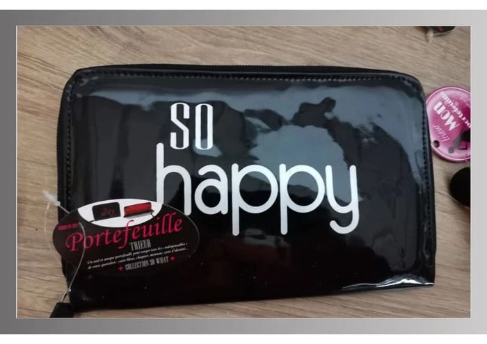 Portefeuille noir so happy argenté 20X12 cm (J362)