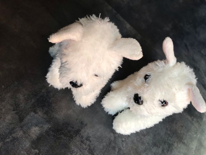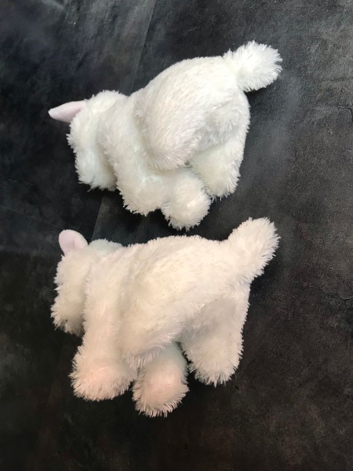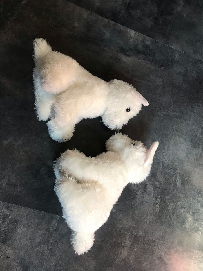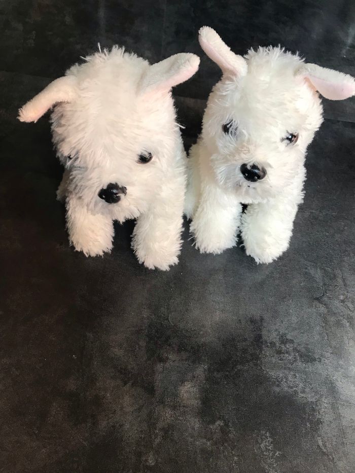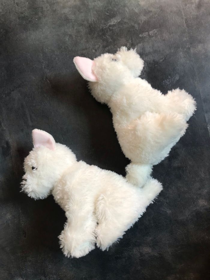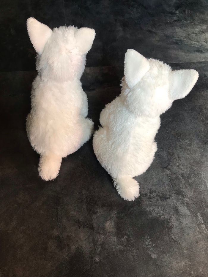 2 chiens blanc identiques Hauteur 19 cm idée cadeau jumeaux Étiquettes coupées