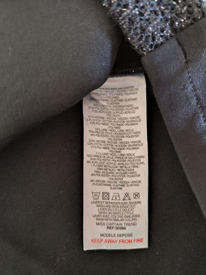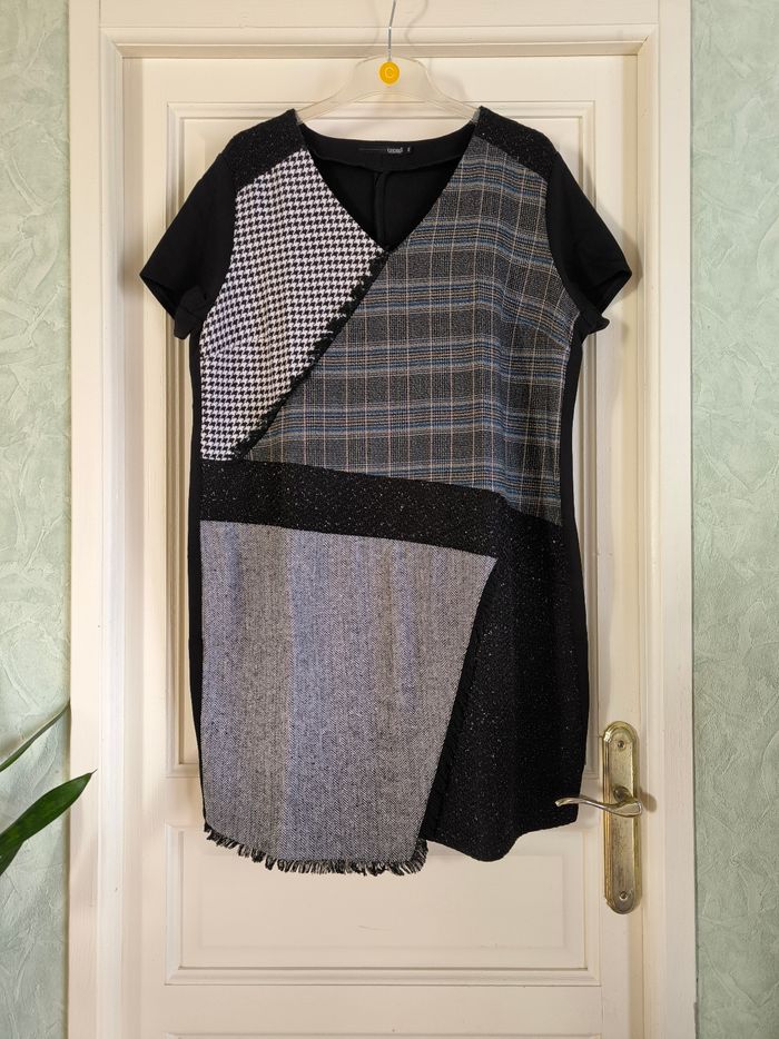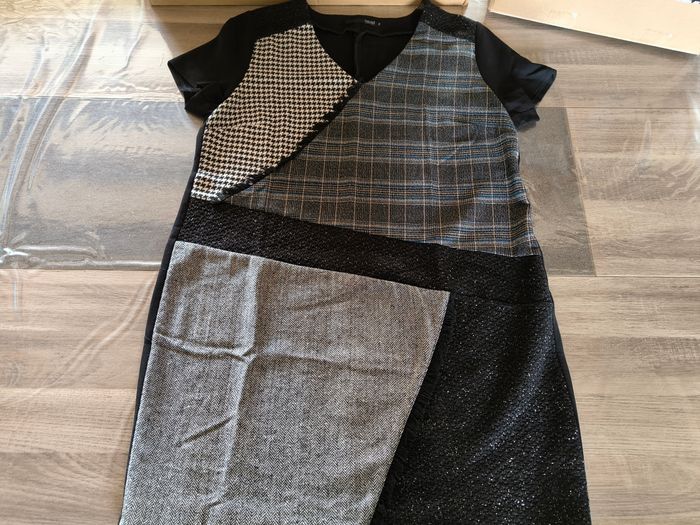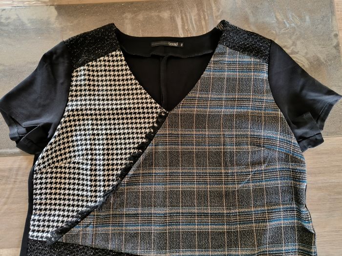 Robe d'hiver à manches courtes Marque Trend by Captain Tortue Taille 46 • Coloris noir, gris, blanc, bleu... • Motif pied-de-poule, carreaux, rayures • Broderies pailletées, franges • Stretch • Contient de la laine Largeur épaule à épaule non étirée : 42 cm Largeur épaule à épaule étirée au maximum : 57 cm Largeur aisselle à aisselle non étirée : 55 cm Largeur aisselle à aisselle étirée au maximum : 66 cm Longueur totale : 92 cm Longueur aisselle : 64 cm Effet chic Peu portée, en très bon état proche du neuf #evelyne_taille_46