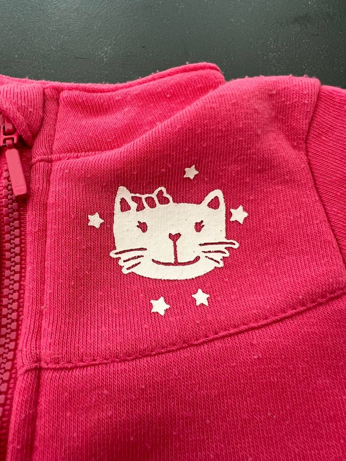 Sweat zippé de couleur rose fuschia, motif chat sur la poitrine. En très bon état, peu porté, légèrement feutré. 100% polyester. Taille 12 mois, pas de marque. Envoi rapide et soigné, réduction automatique dès 2 articles sélectionnés. Mes autres ventes ici: #12moisfilleugolola #12moisfille #fille12mois #giletfille12mois #sweatfille12mois