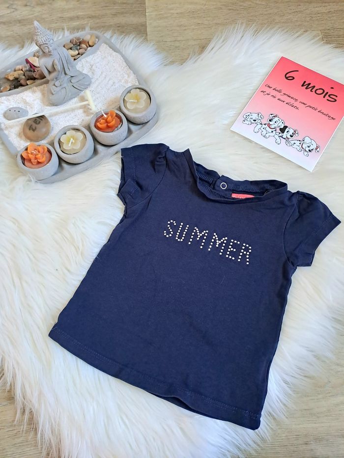 #6sixmoisfilleetmixteilyana 🍬 Tee-shirts bleu manche courte. Neuf sans étiquette. Taille 6 mois. #teeshirt #bleu #fille #6mois #tissaia #neuf