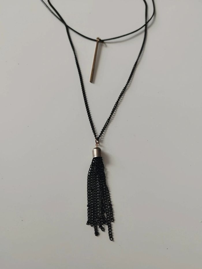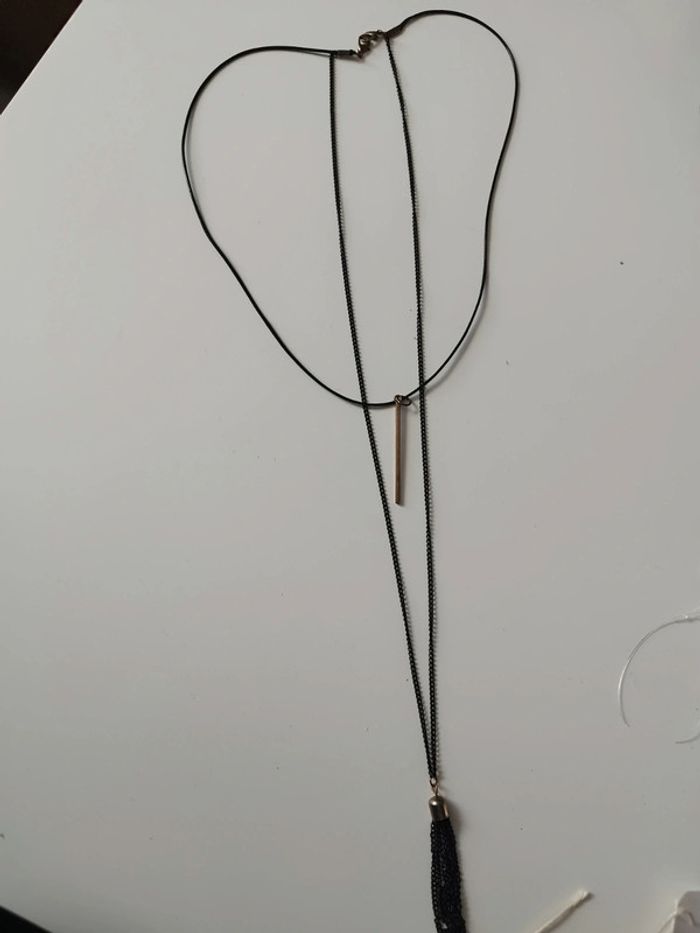 Sautoir collier fantaisie noir en deux parties Très bon état voir photos
