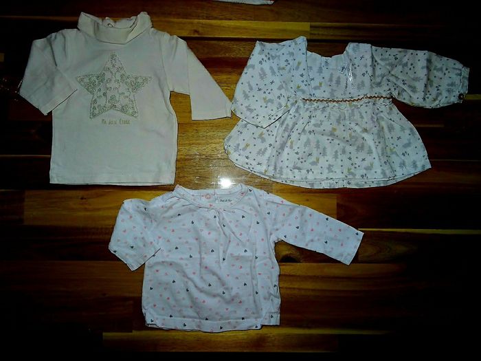 Vend 3 hauts manches longues 1 motif Hiver ( Orchestra ) 1 motif cœurs 1 motif étoile Taille 1 mois ** possibilité de baisse du prix si achat de plusieurS articleS dans mon dressing 😉 **