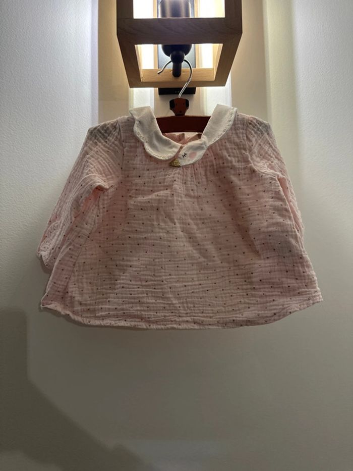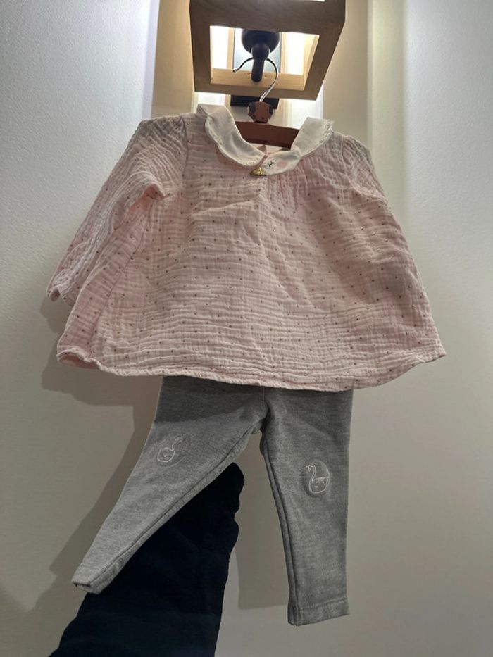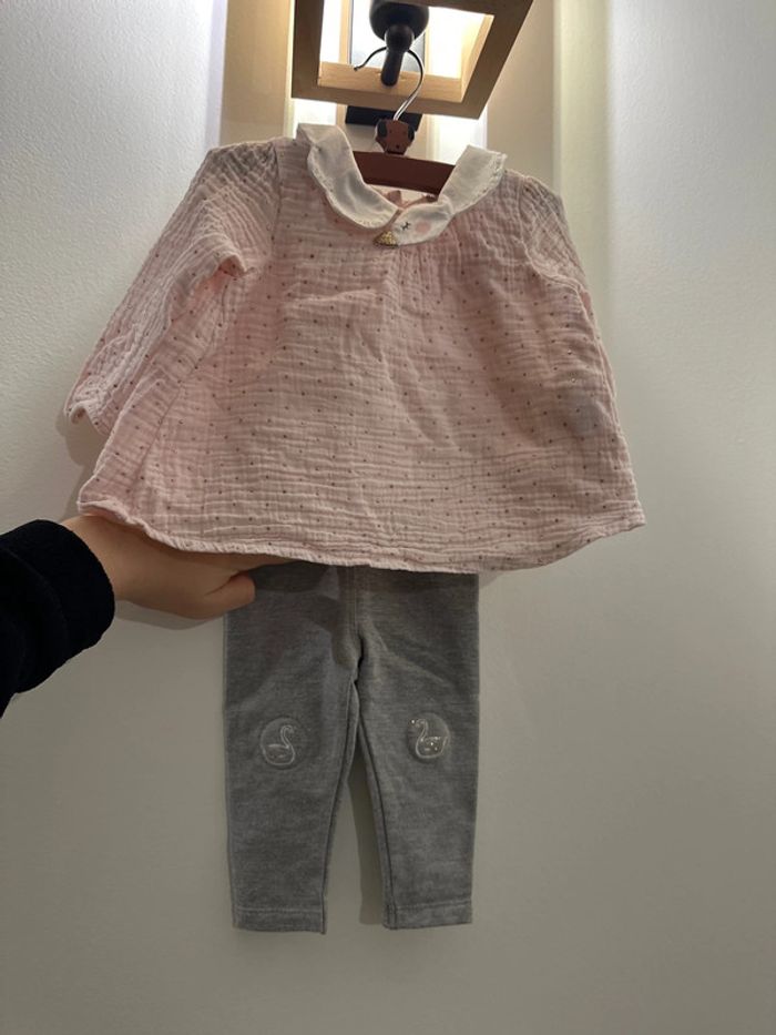 Magnifique ensemble de chez orchestra avec cygnes Chemisier matière gaze de coton doublé Taille 9 mois