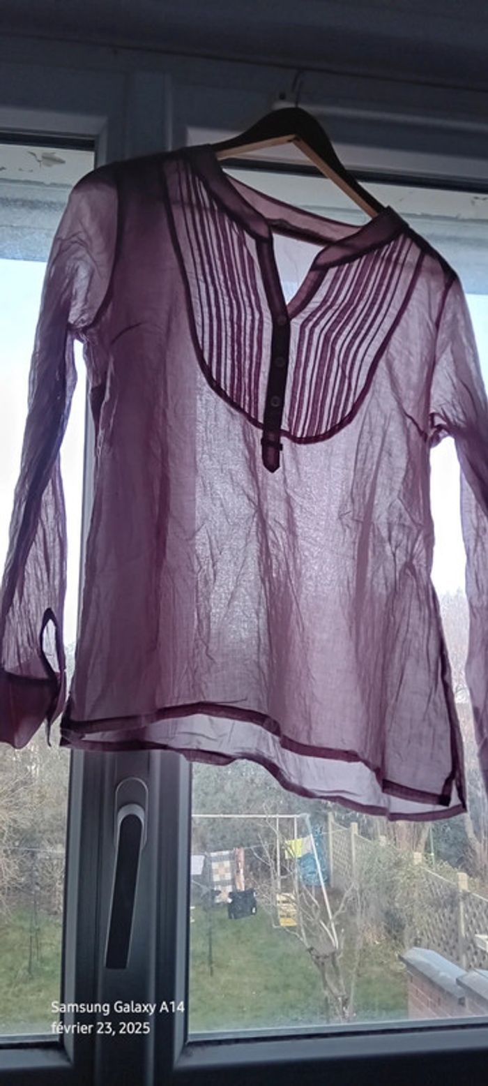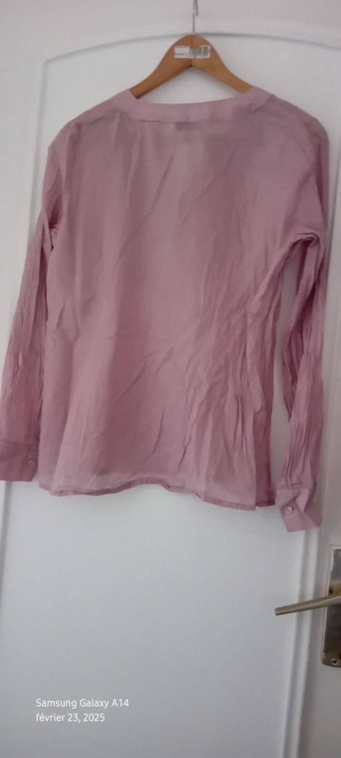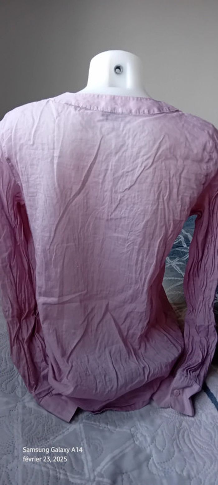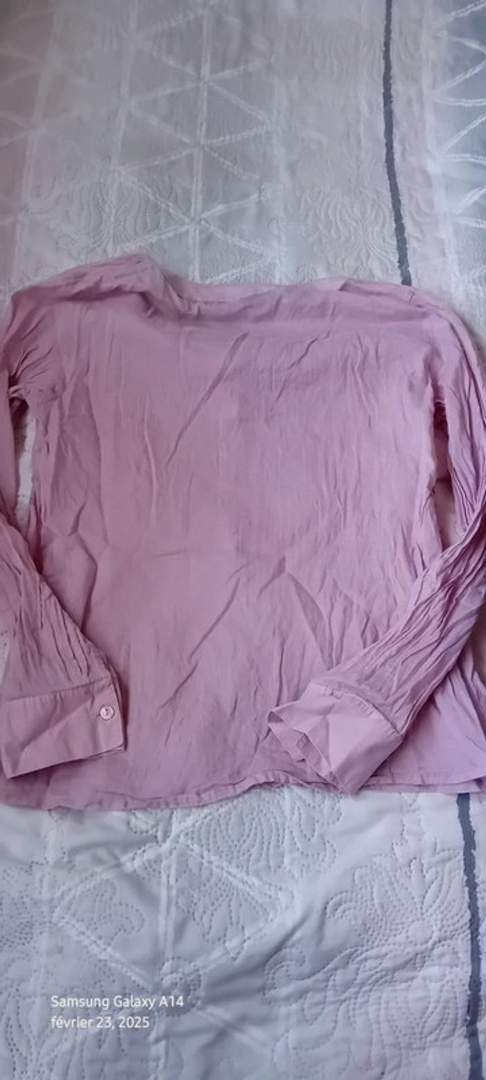 Blouse manches longues en viscose et coton matière légère semi transparente plastron plissé au décolleté avec boutons couleur vieux rose tirant sur le mauve longueur 61 cm largeur aisselles à aisselles 54 cm largeur épaules 36 cm longueur manches 60 cm correspond à un petit 42 peu portée en très bon état #midole #midolefemme #midolefemme42 #blouse #blousefemme42 #blousefemmexl #femmexl #femme42 #mauve #blouselegere42 #pimkie