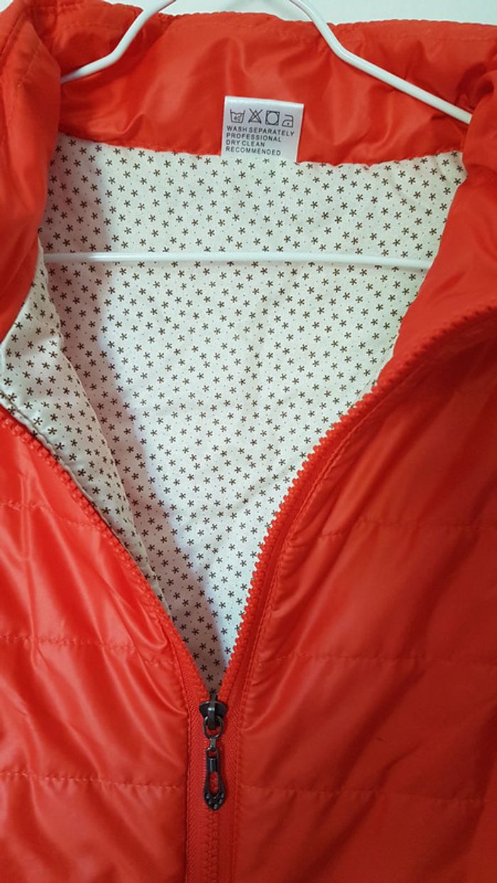 Doudoune orange Intérieur blanc étoilé Taille M 2 poches qui ferment Col rond un peu montant Légère #SILVVêtementsFtM