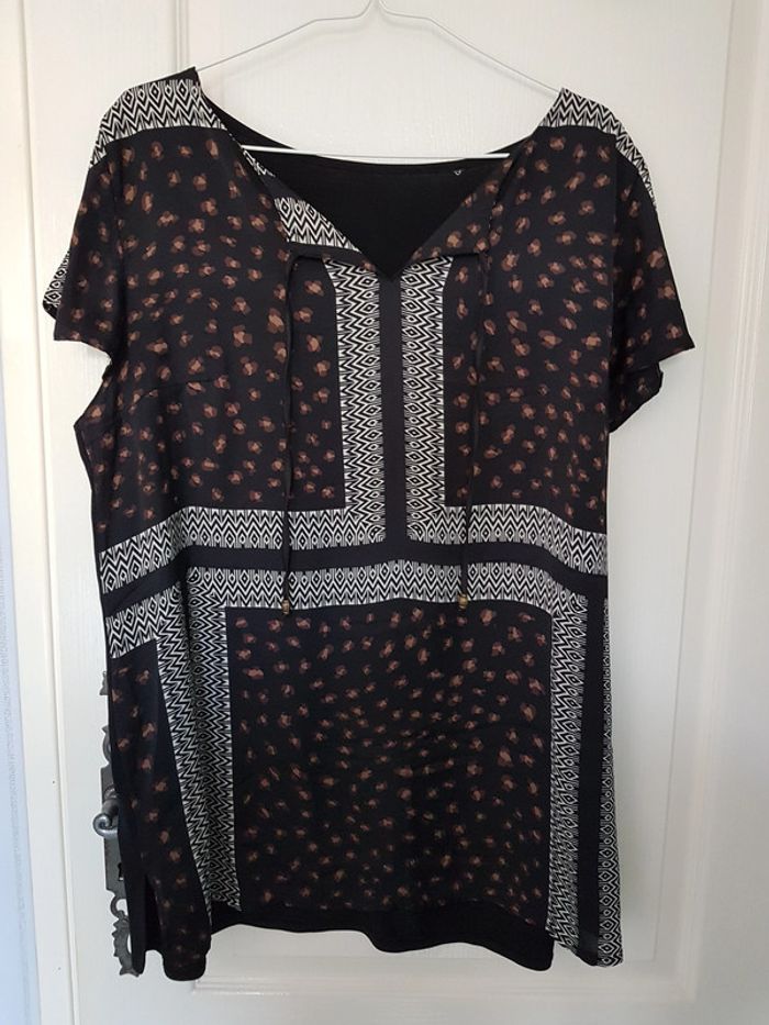 Tunique fluide Plus Noir, marron, blanc Etiquette coupée mais il s'agit d'une taille 4 (voir mesures sur dernière photo) #SILVVêtementsFtXL