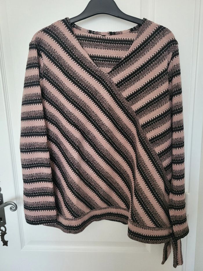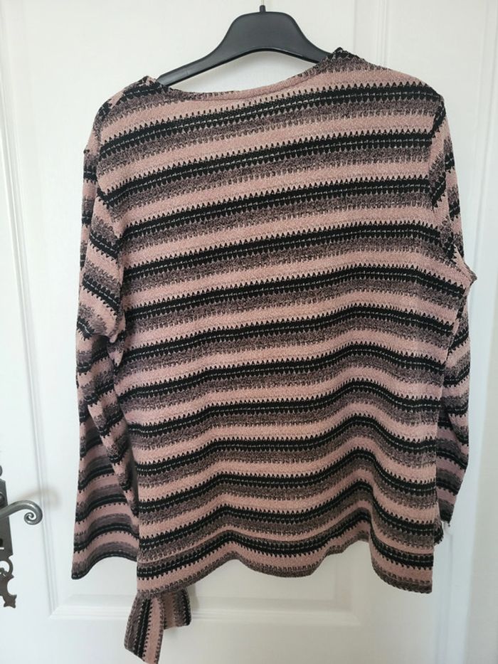 Pull rose noir gris Plus Col V Rayures obliques Etiquette coupée mais il s'agit d'une taille 4 (voir mesures sur dernière photo) #SILVVêtementsFtXL