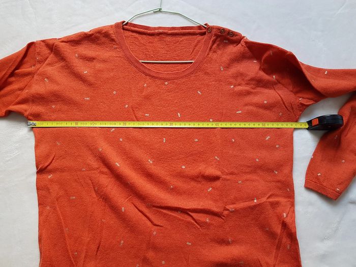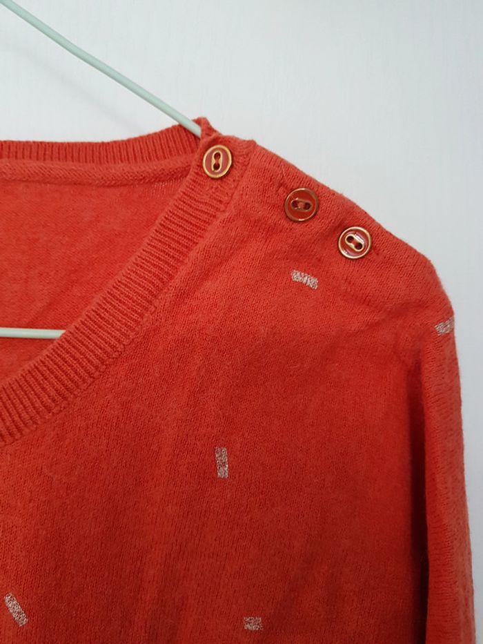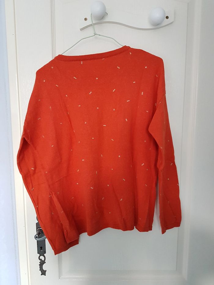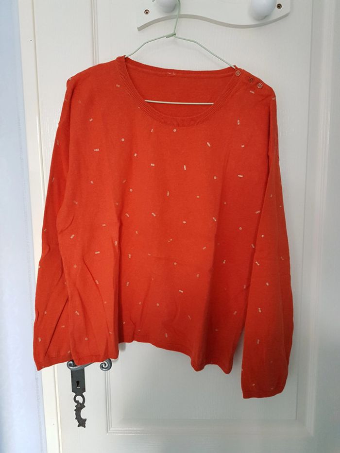 Pull orange Camaïeu Trois boutons décoratifs Motif doré Etiquette coupée mais il s'agit d'une taille XL (voir mesures sur dernière photo) #SILVVêtementsFtXL
