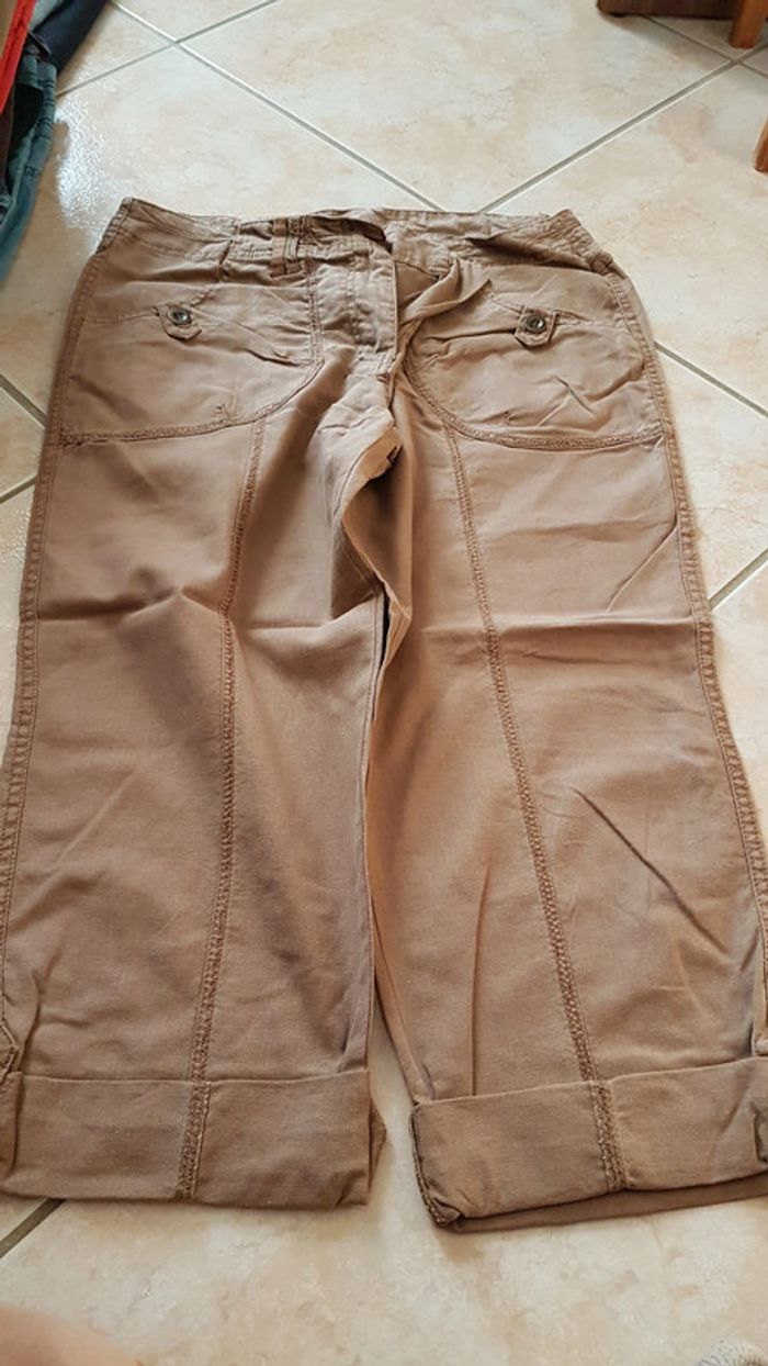 Pantacourt marron/beige T44 - photo numéro 3