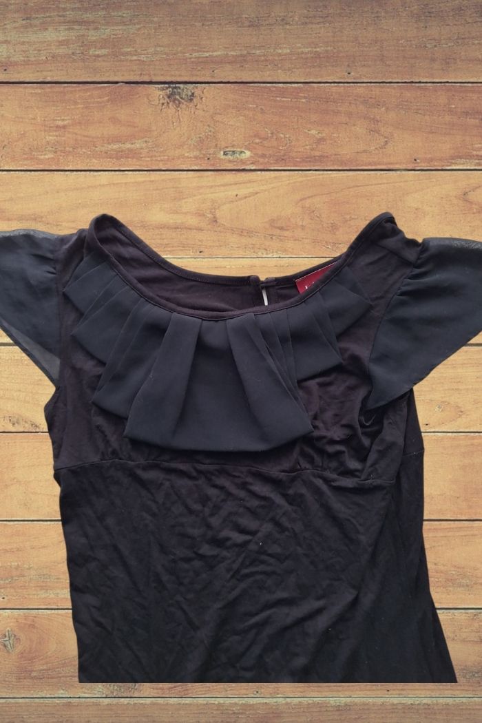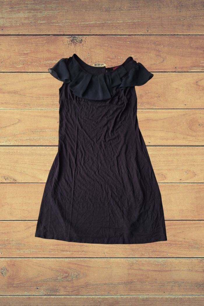 🚩💰 Réductions activées sur les lot 🚩 ➡️ Envoi rapide et soigné ! 👭 Robe col en rond et à volant ( voir photo n ° 3 ) qui se ferme avec 3 boutons dans le dos Les manches sont transparente 📏 Taille : 36 🌈 couleur : noir 🏷 De la marque : la City Robe déjà portée encore en bon état.