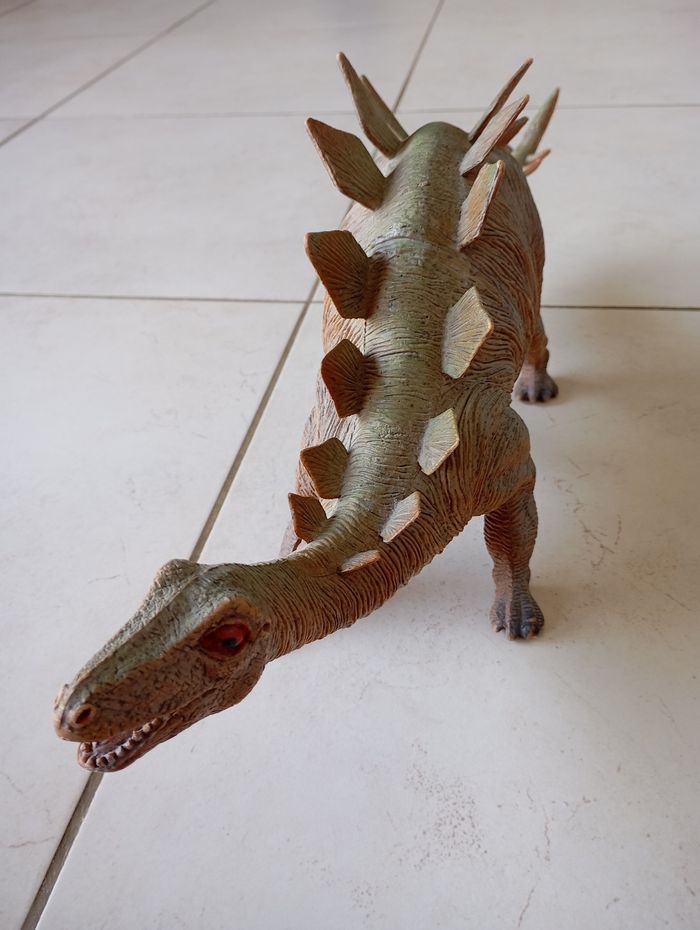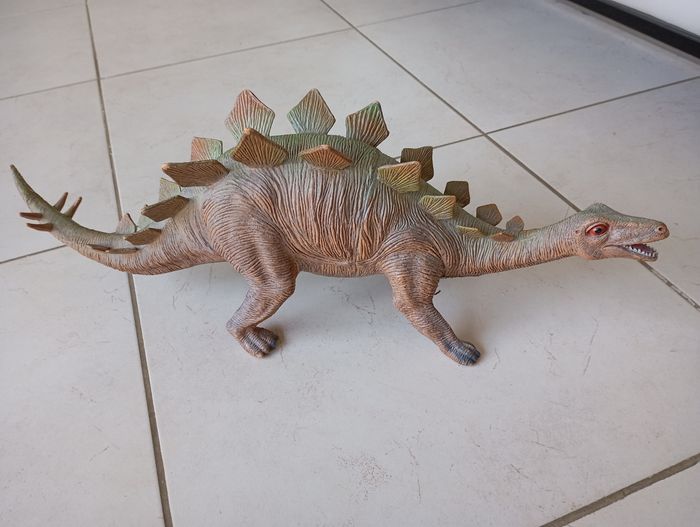 Figurine Grand dinosaure stegosaurus Long 50 cm haut 18 cm largeur 13 cm environ simulation réaliste convient pour enfants jouets collectionneur, enseignant Très résistant en PVC ne se casse pas très bon état quelques endroits usures couleurs J'en ai 3 autres ds autres annonces
