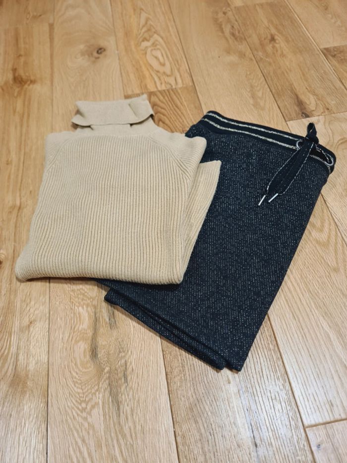 Jupe noir et or ceinture élastique 14 ans État neuf Tshirt côtelé beige foncé XXS Jennyfer TBE #laetvict14ans