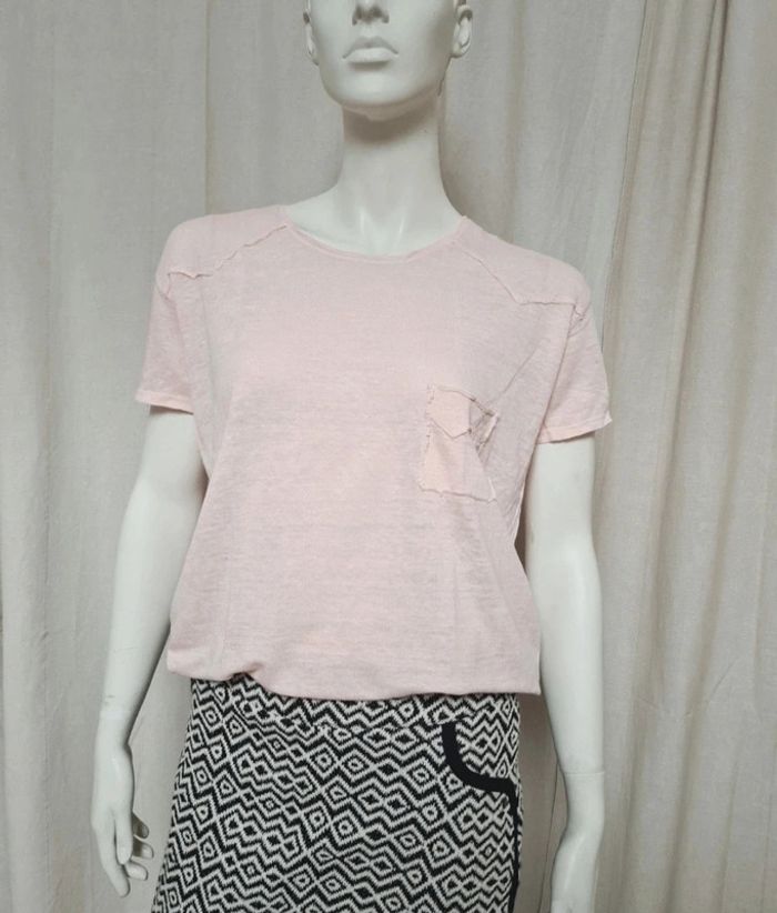 Tshirt rose tendre en lin Taille 36 - photo numéro 1