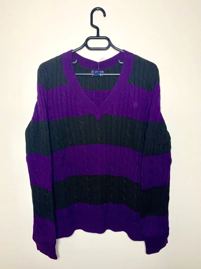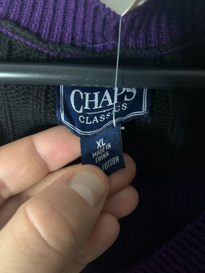 Pull col V vintage Chaps torsadé cable knit taille XL