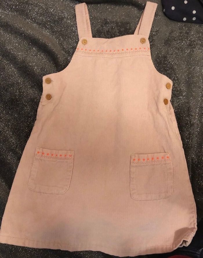Robe à bretelles en velours côtelé vieux rose. Robe en très bon état. Taille 5 ans.