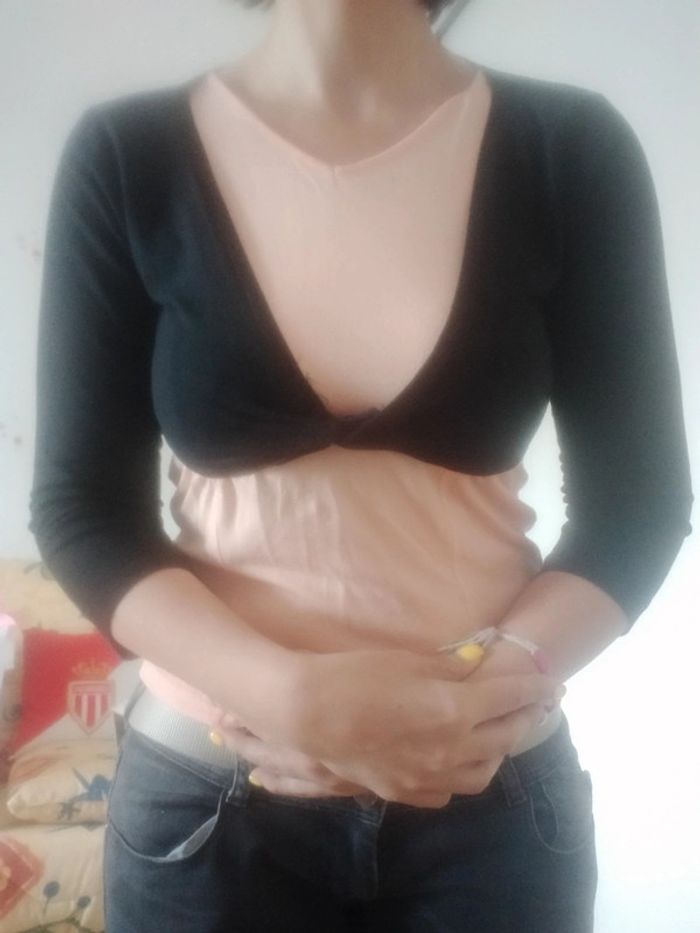 Gilet noir court. Manches 3/4. Jennyfer. Taille 38 Noeud devant (ne se détache Pas) Voir photo porté Très bon état 1€50 Envoi par mondial Relay Remise en main propre possible sur Beauregard Vendon Riom ou Clermont Ferrand 63 D'autres articles de cette taille sur #ptitesev63vetement38