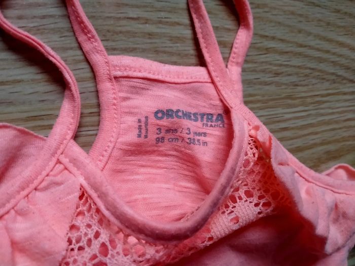 Débardeur orange. Orchestra. Taille 3 ans Froufrous Très bon état Légères bouloches Lavé avec lessive bébé Maison non fumeur 2 Euros Envoi par mondial Relay Remise en main propre possible sur Beauregard Vendon Riom ou Clermont Ferrand 63 #ptitesev63bebe3ans